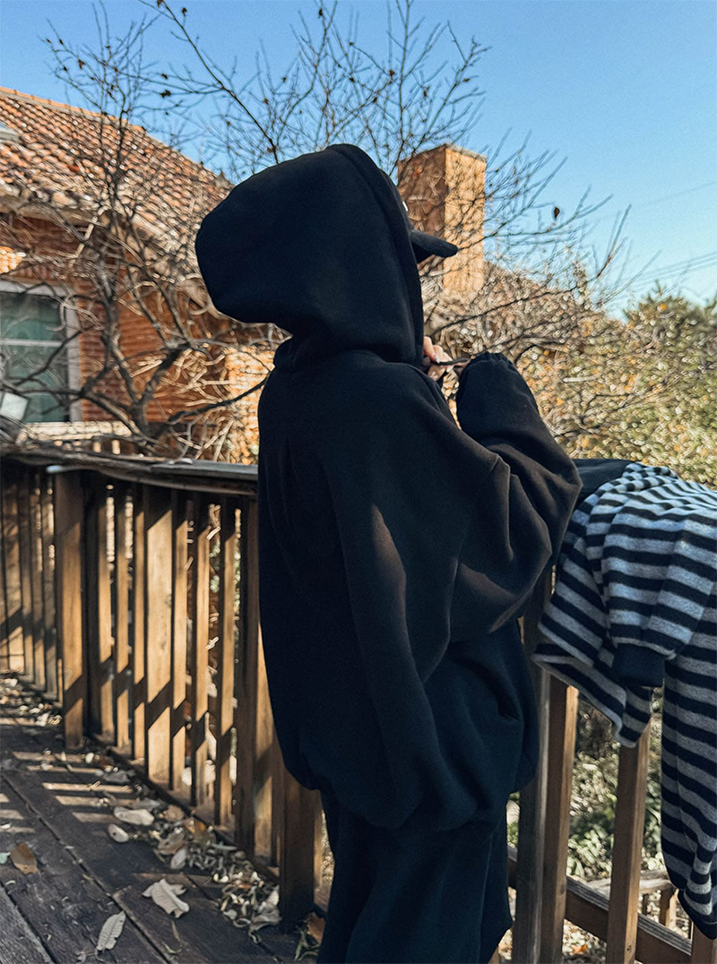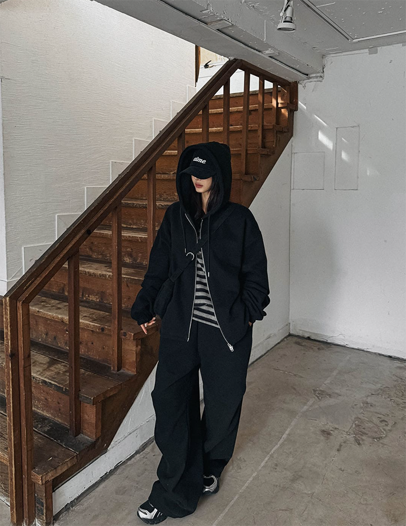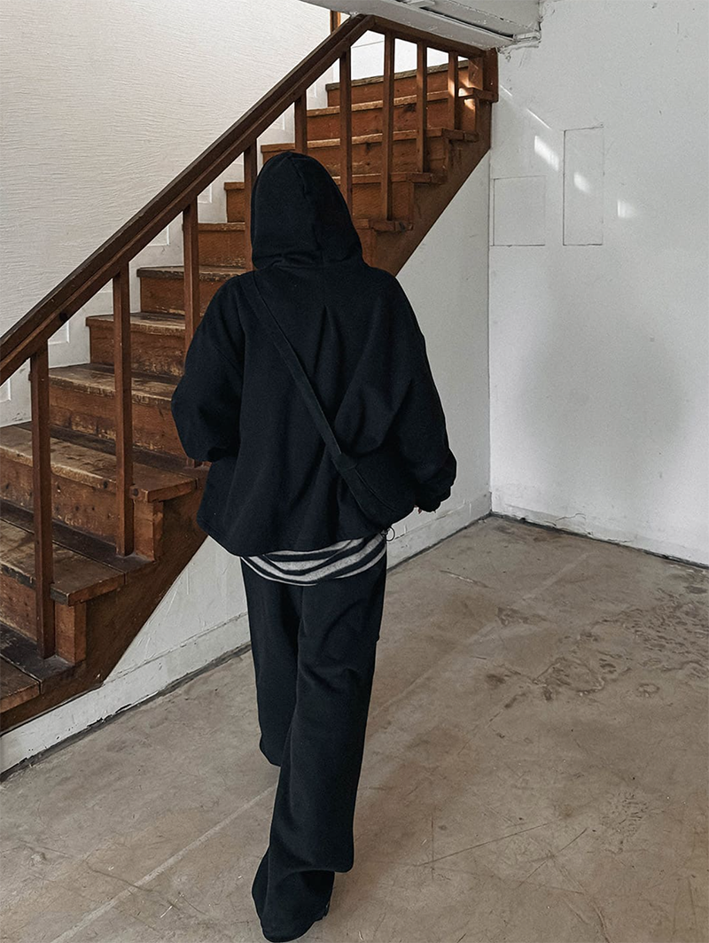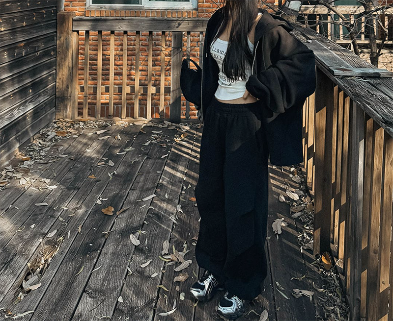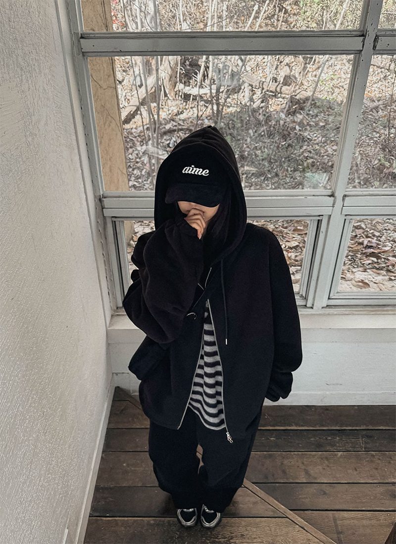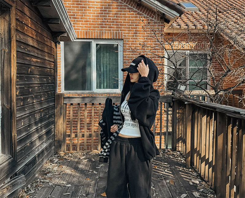 連帽外套搭配雙向拉鍊與下擺抽繩
