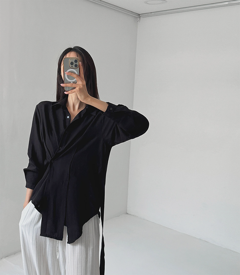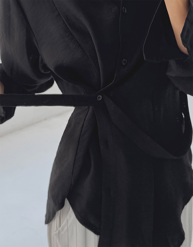 搭配斜裁包裹與背部綁帶設計