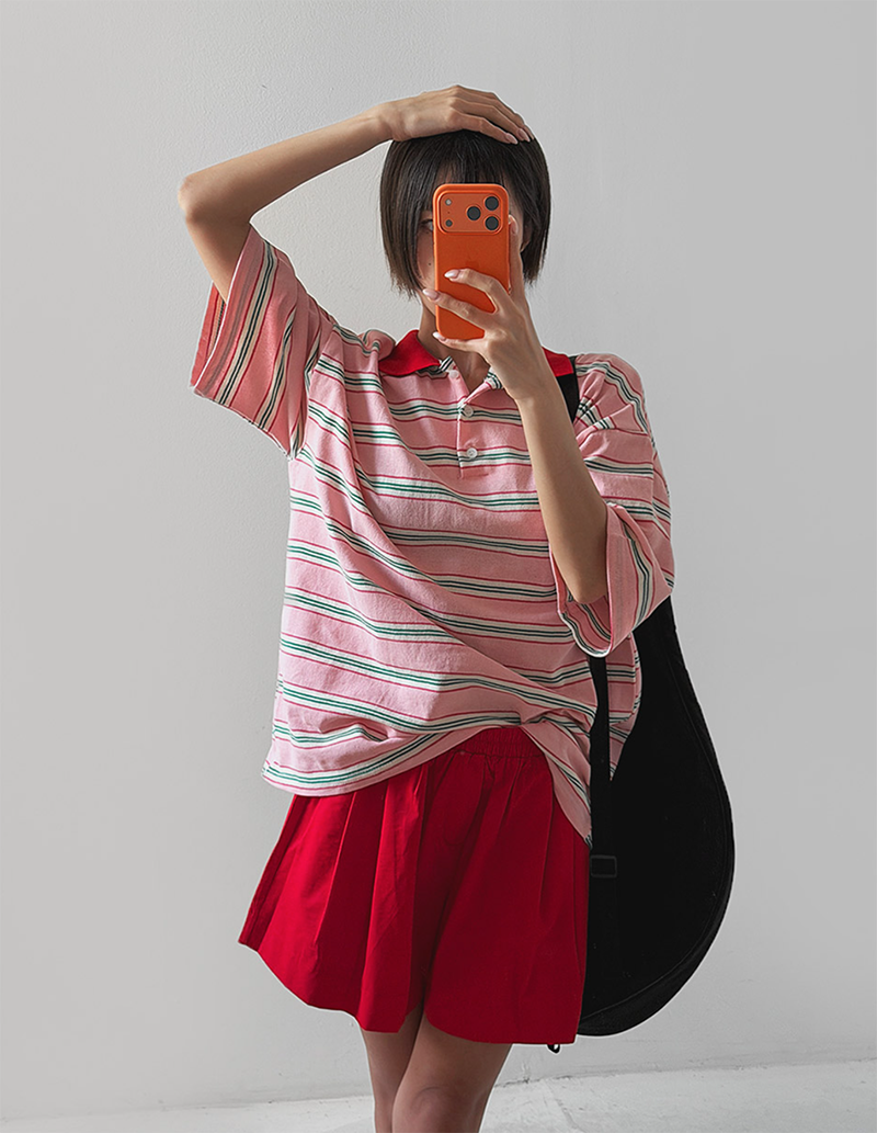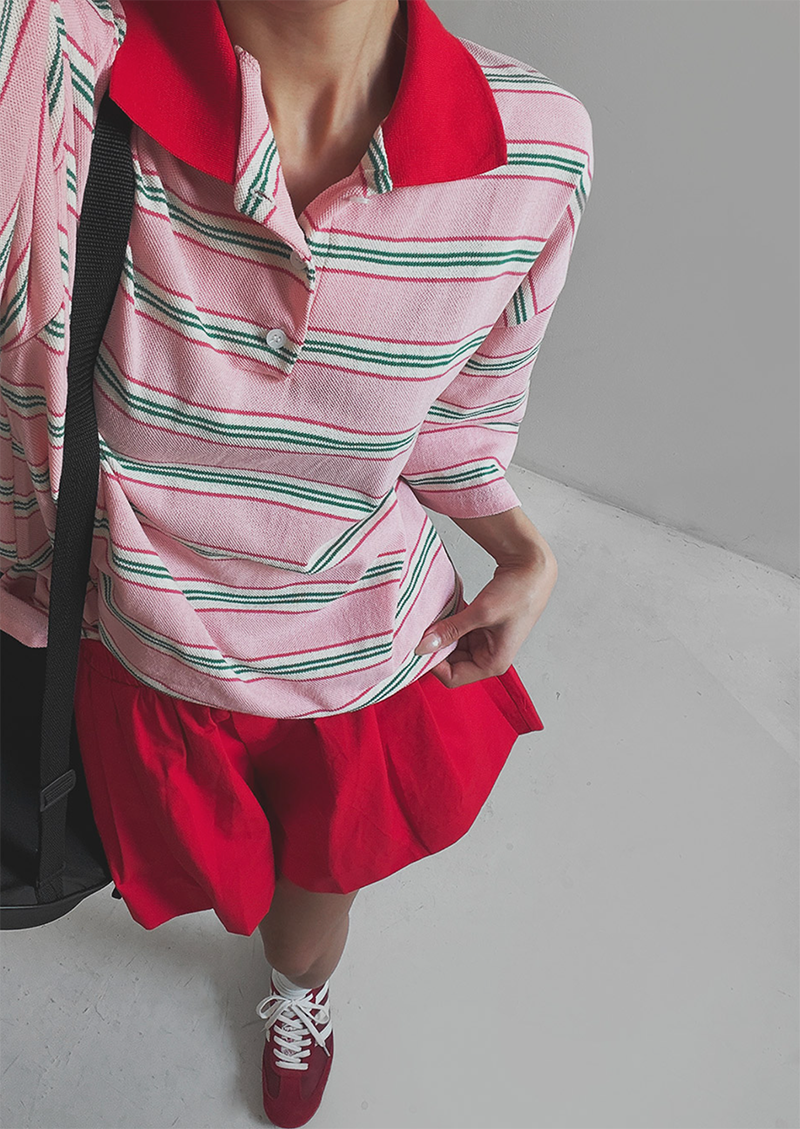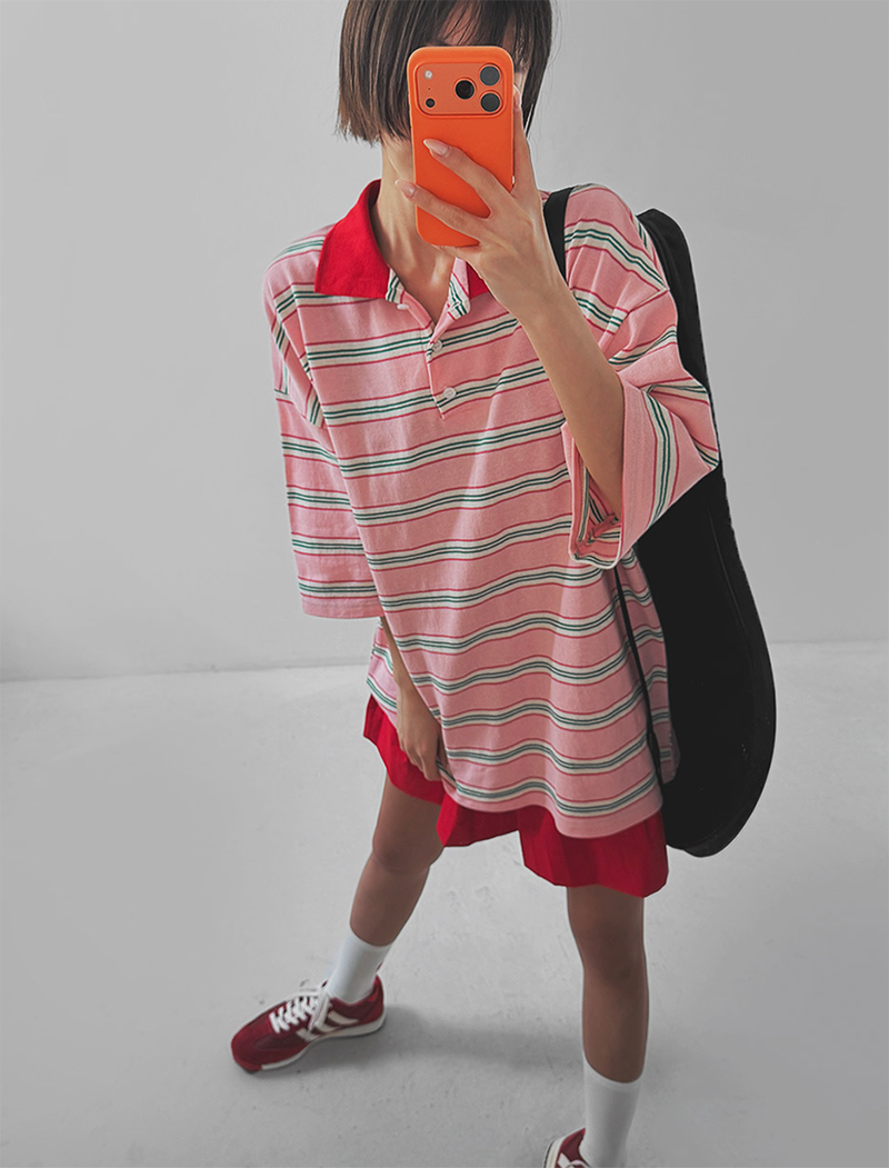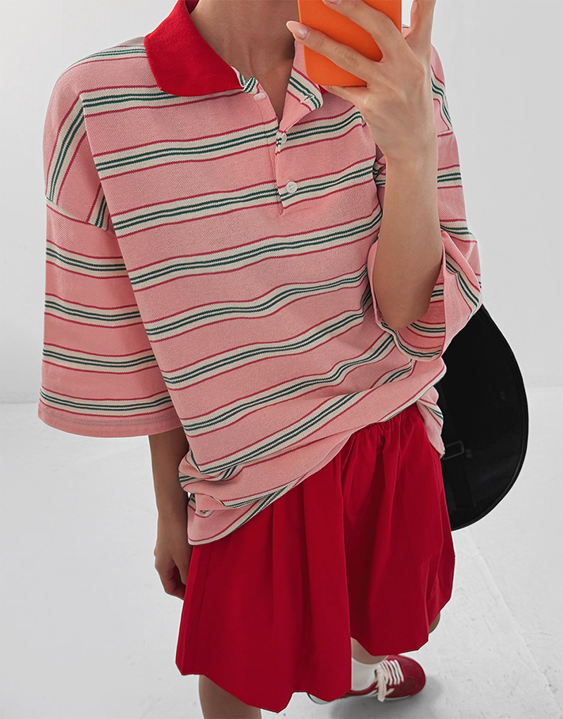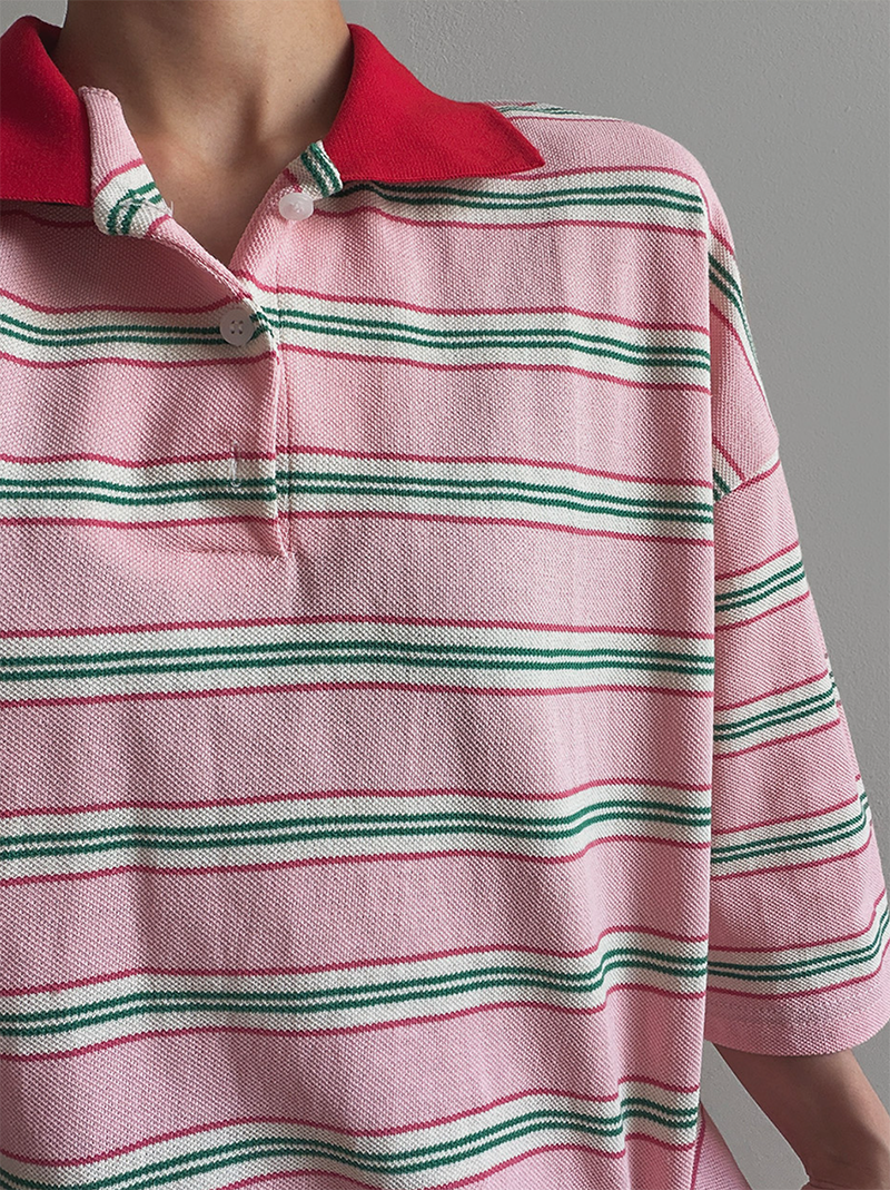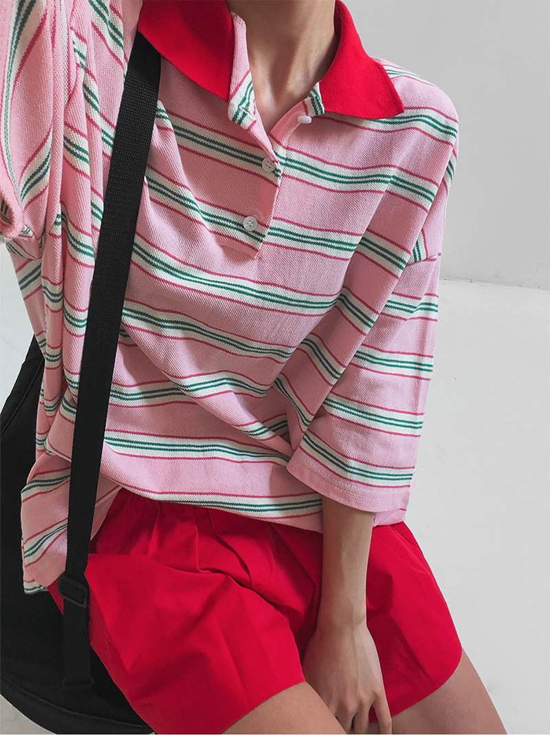 條紋結合翻領設計