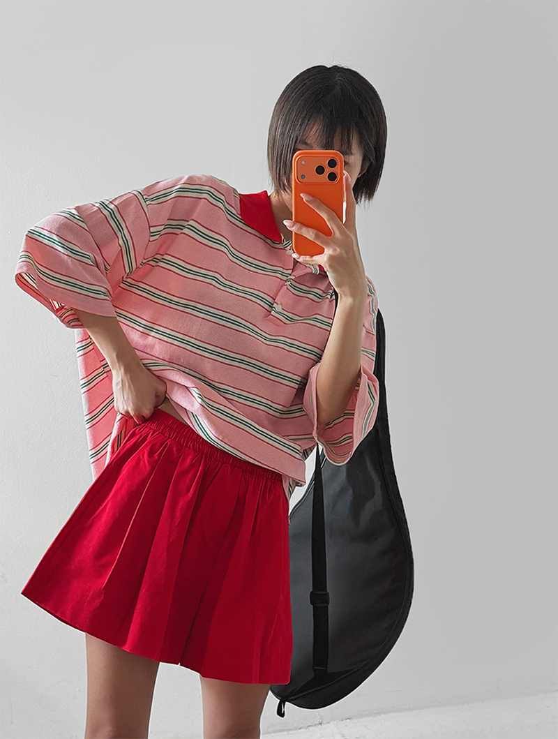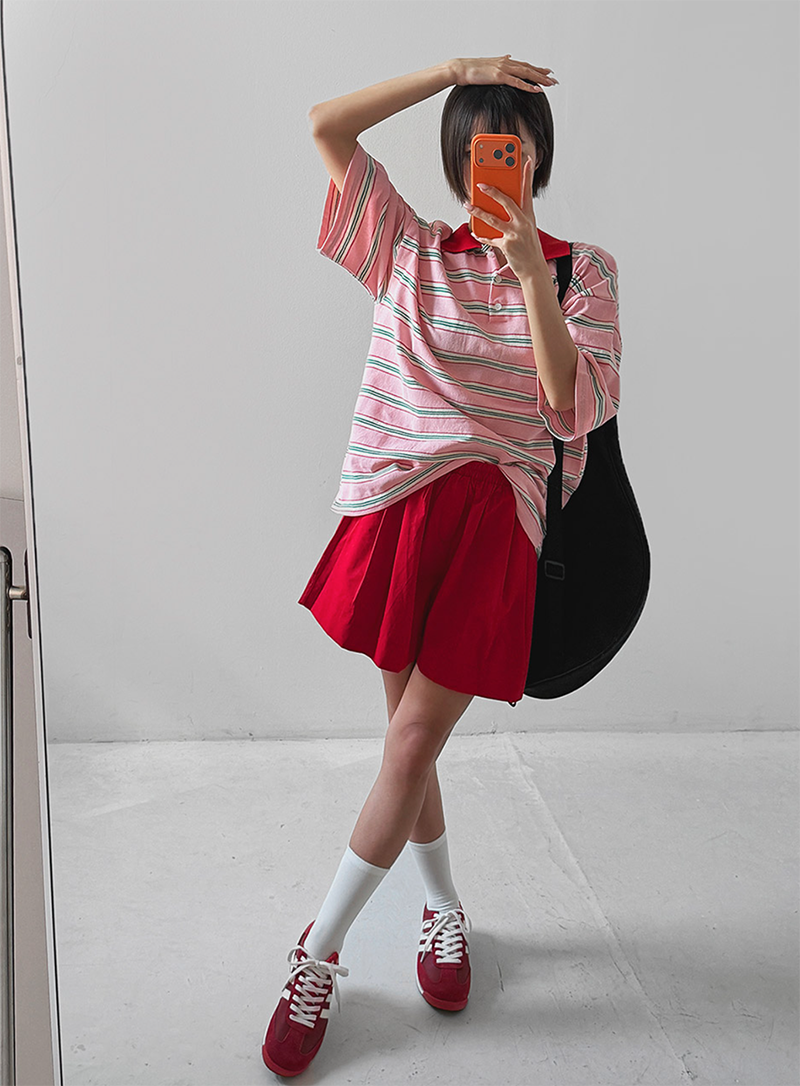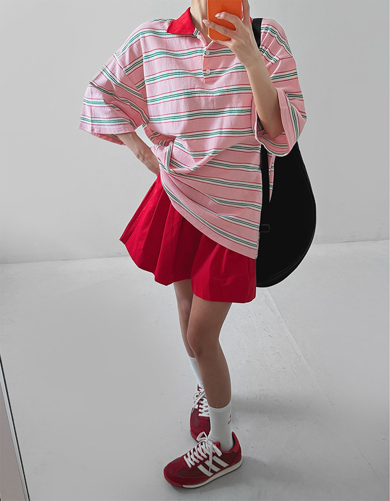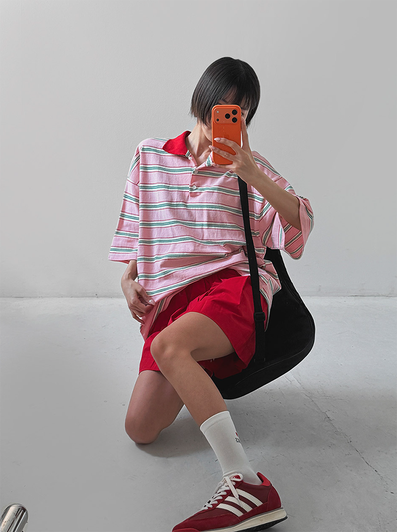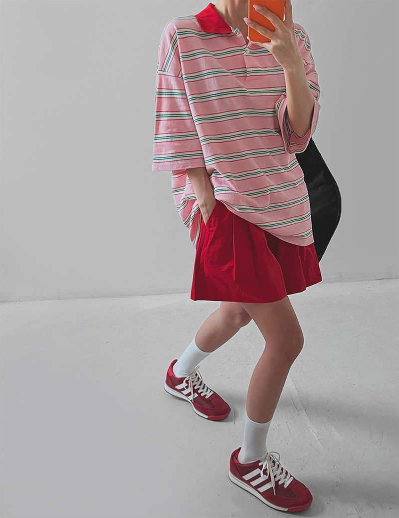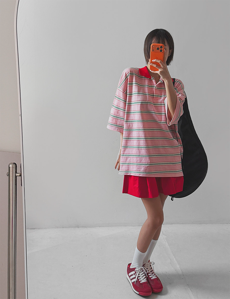 條紋結合翻領設計