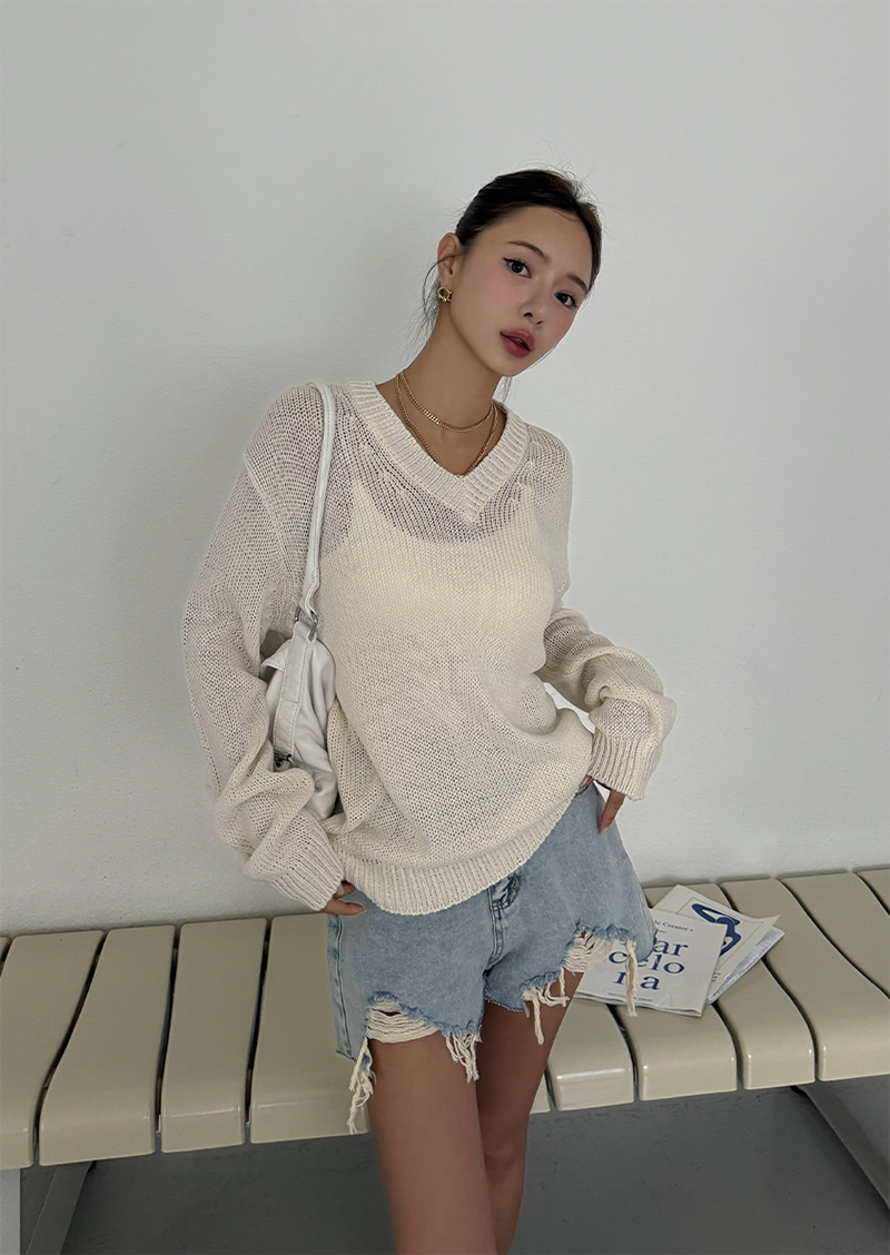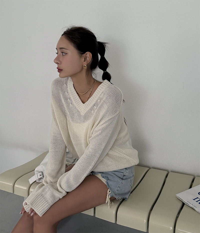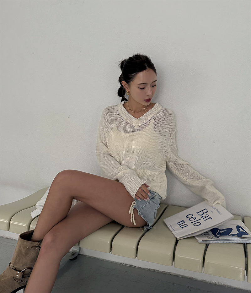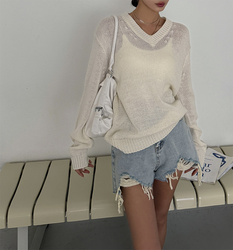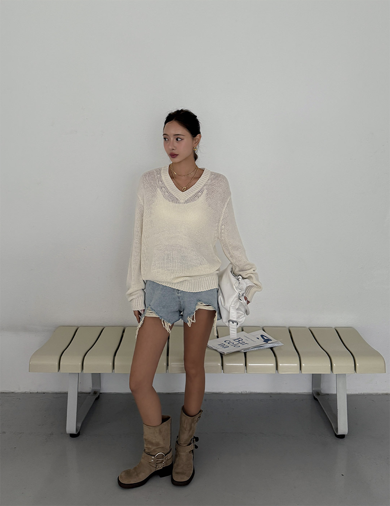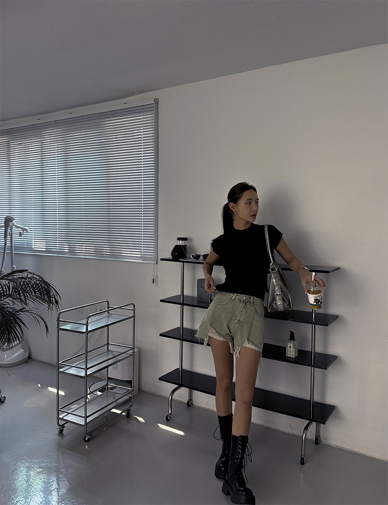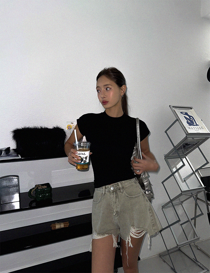 褲擺不規則的割破剪裁 搭配隨性抽鬚