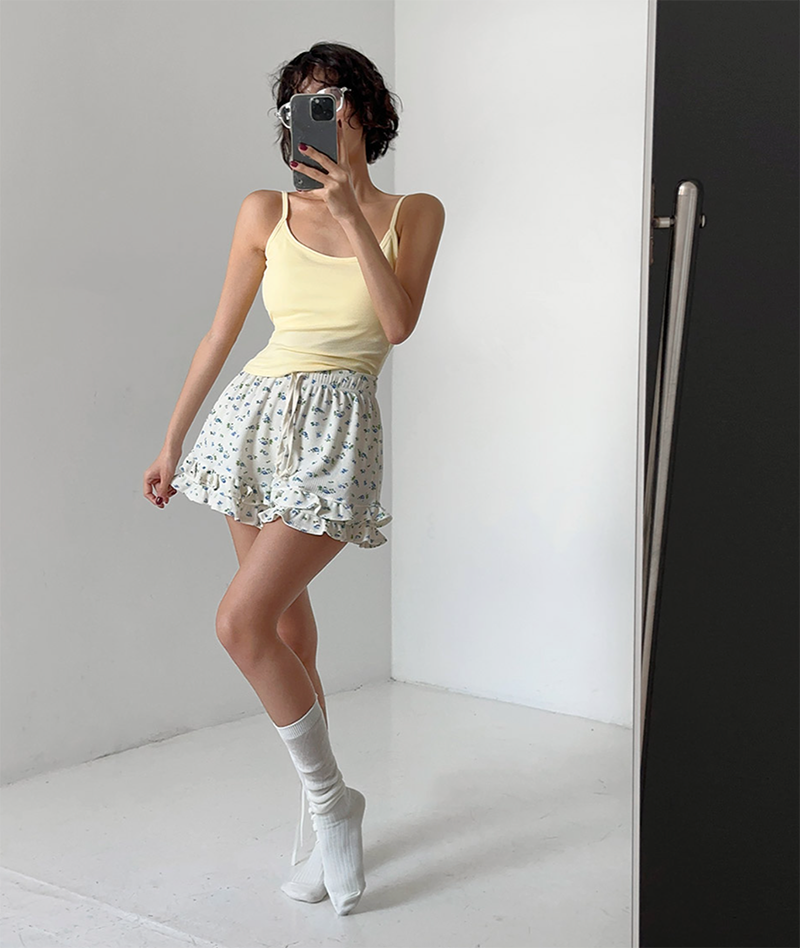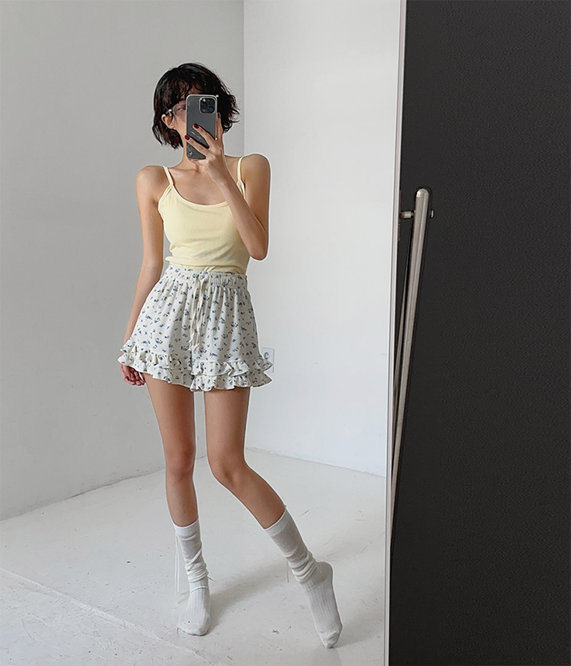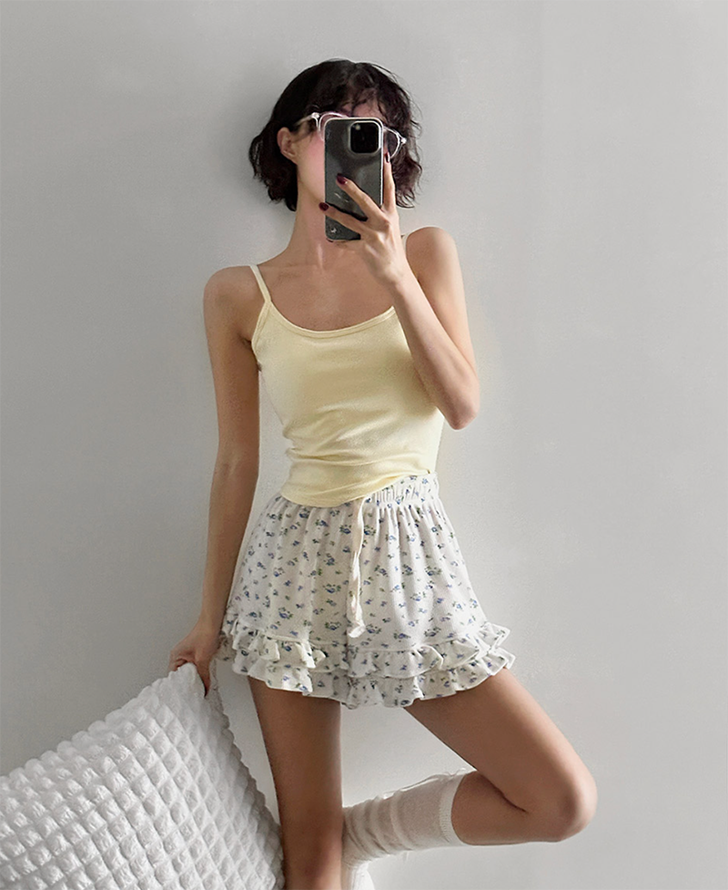 可愛荷葉層次搭配迷你小花圖案