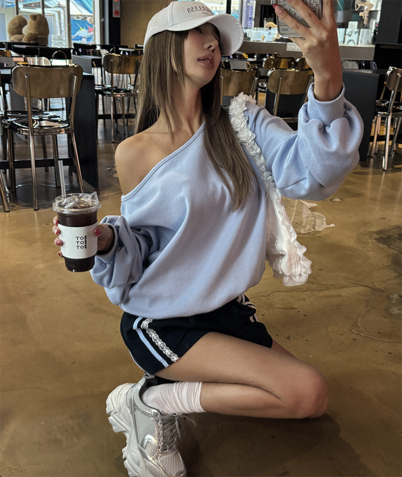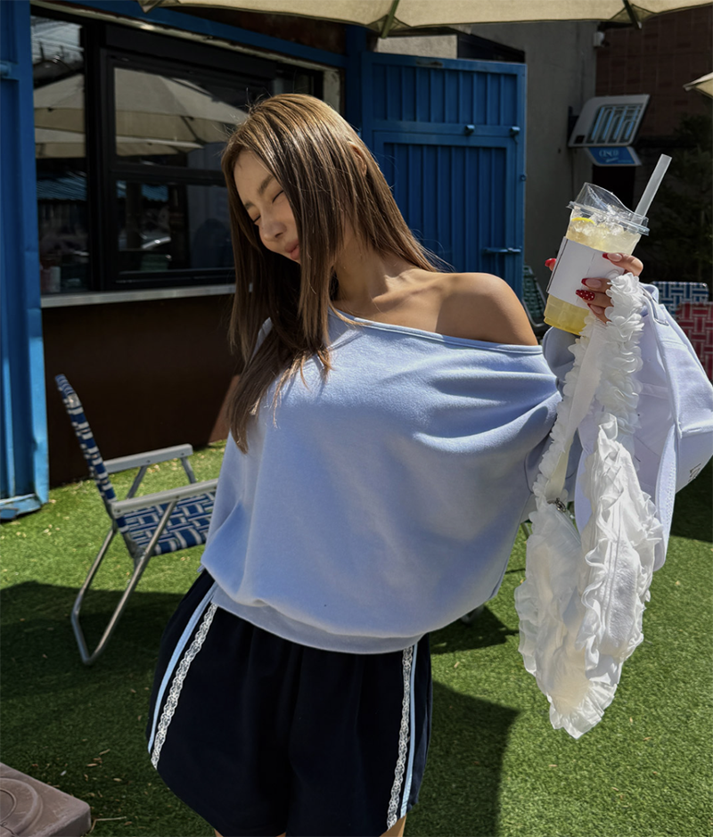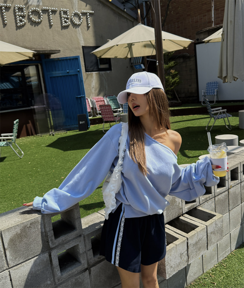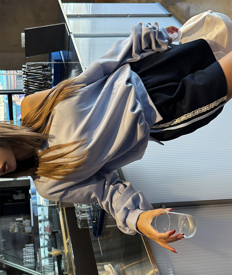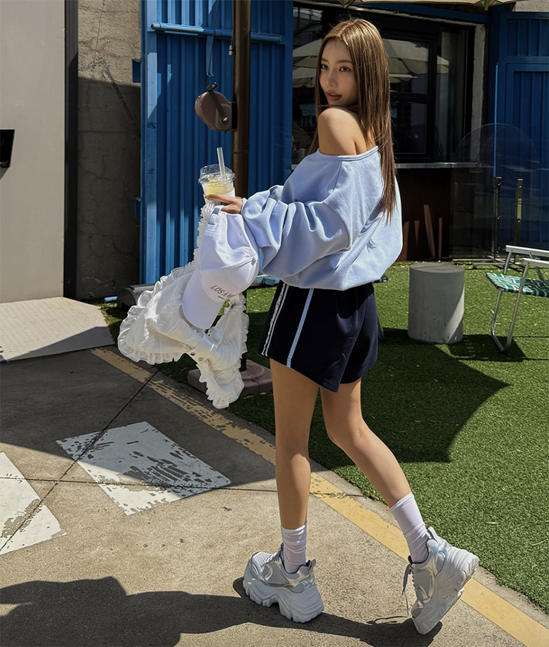 彈力腰頭搭配側邊拼接蕾絲與撞色線條