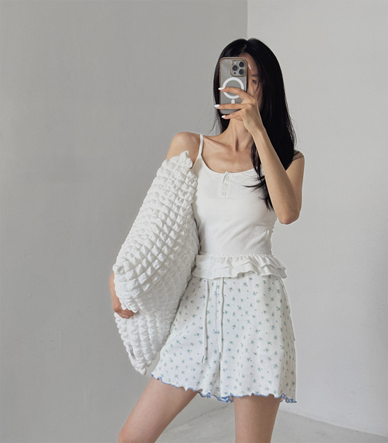 結合清新碎花與立體華夫格織紋呈現自然氣息