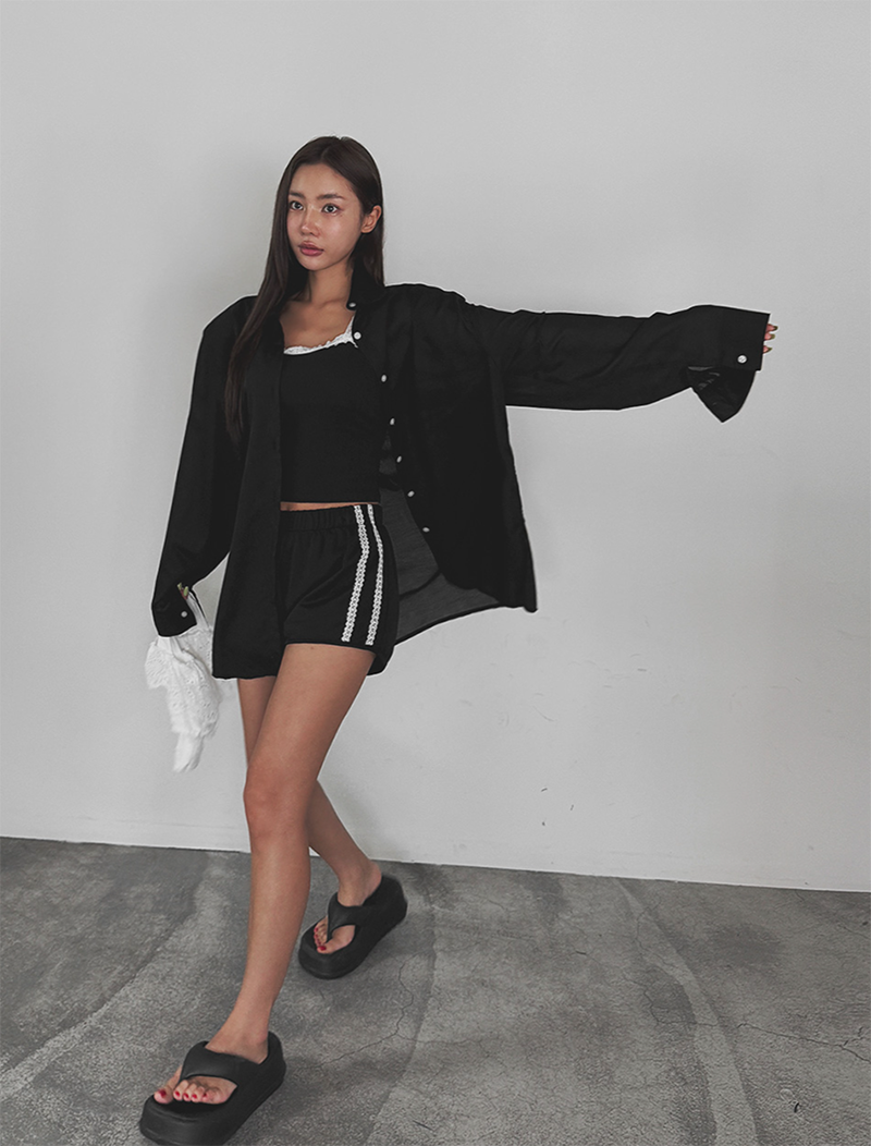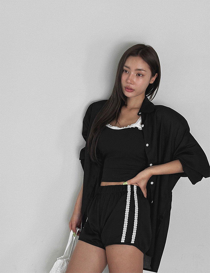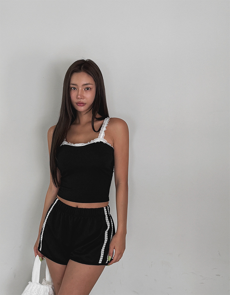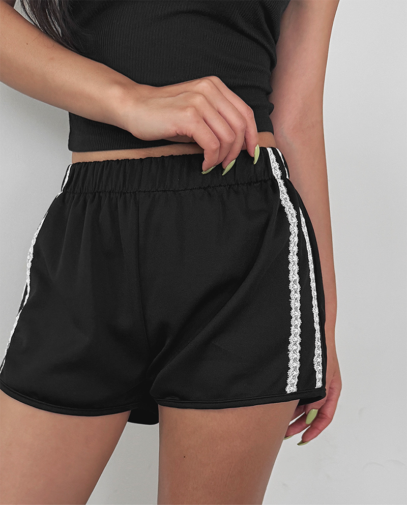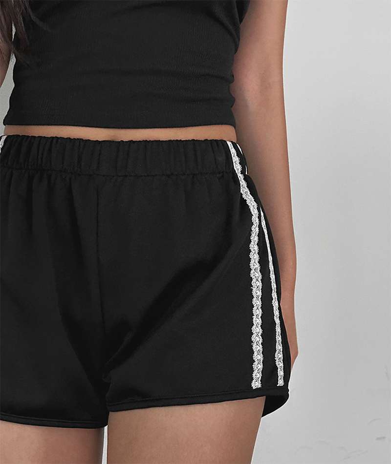 以俐落短版剪裁搭配側邊蕾絲條紋
