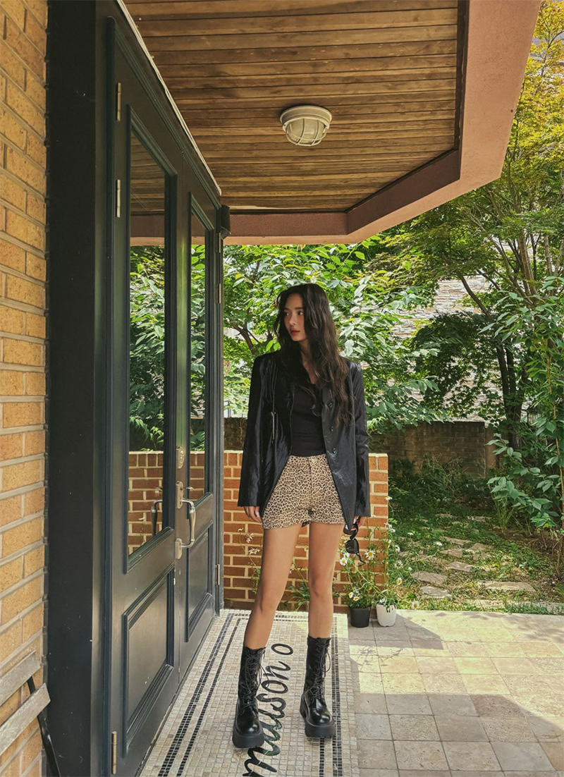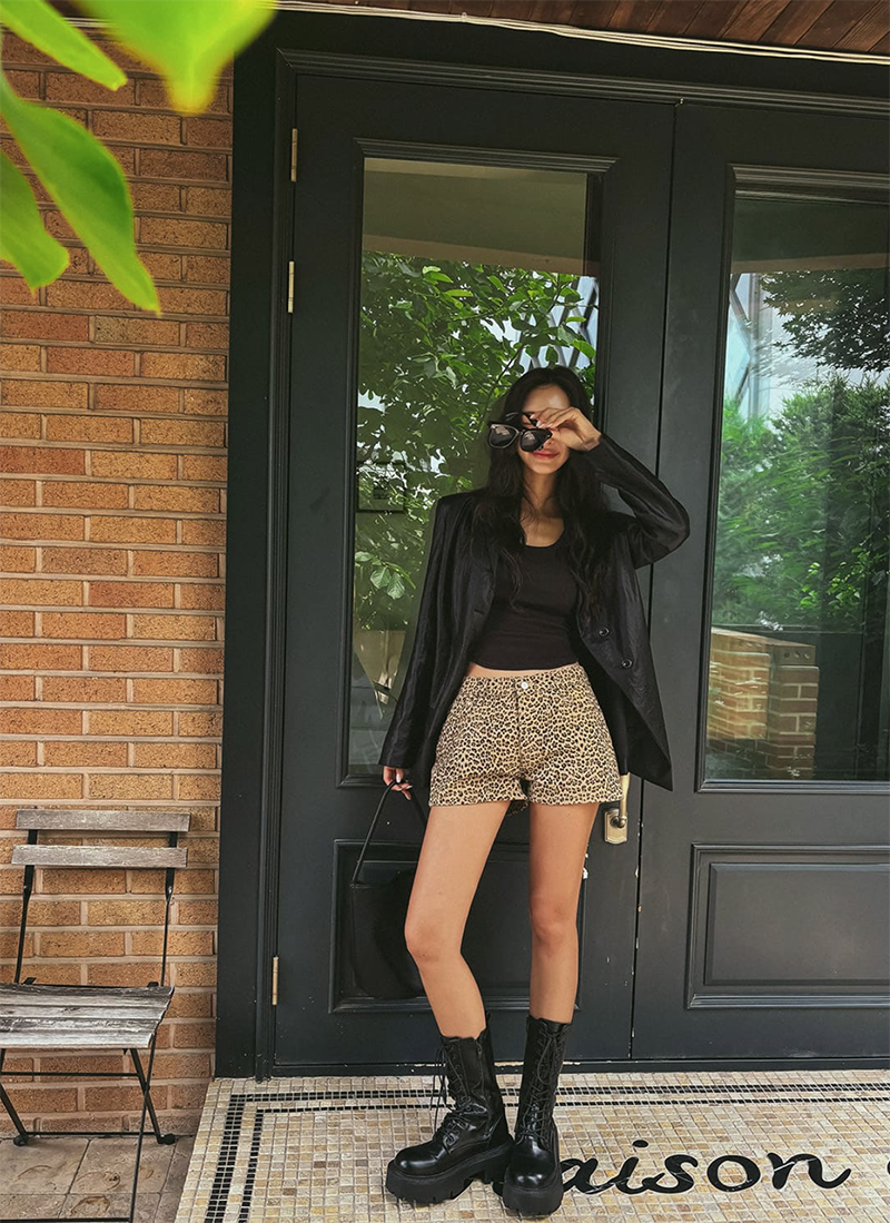 率性豹紋圖騰點亮整體造型