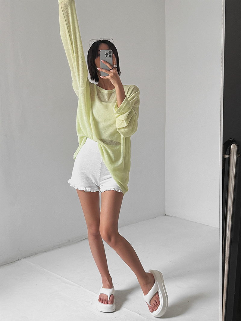 柔軟棉混紡面料搭配可愛荷葉邊與格紋壓紋