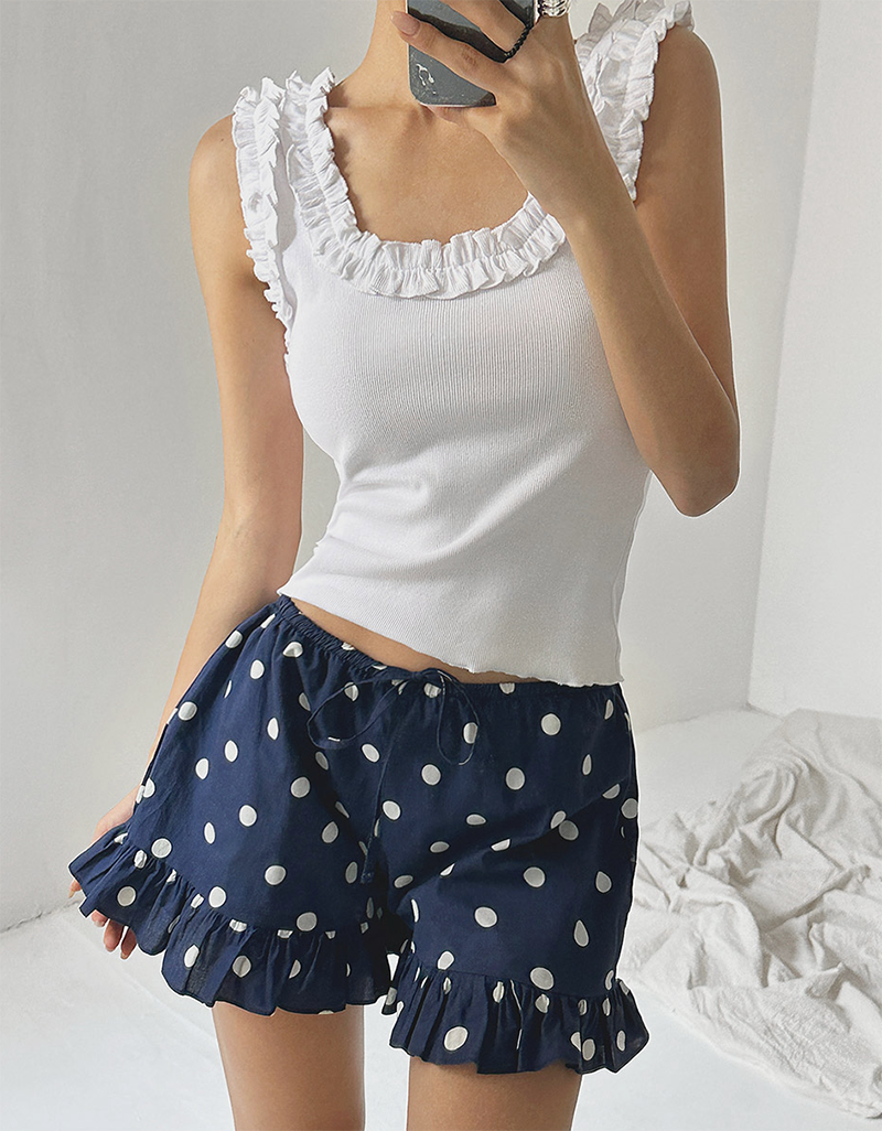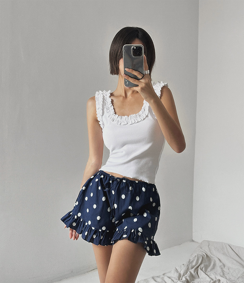 褲口下擺用荷葉邊點綴