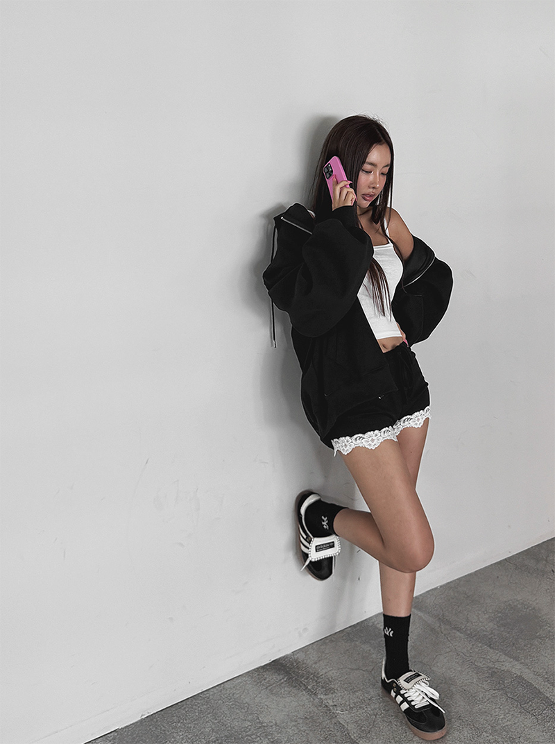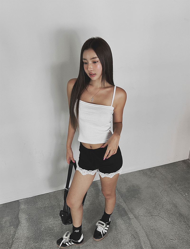 下擺用華麗蕾絲點綴邊緣
