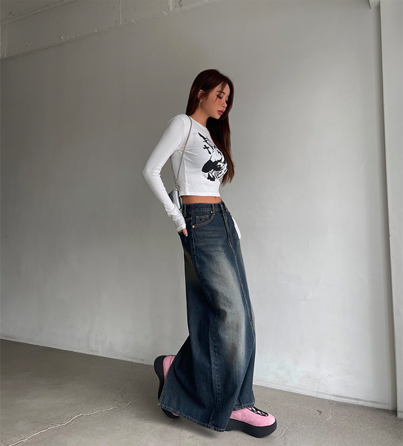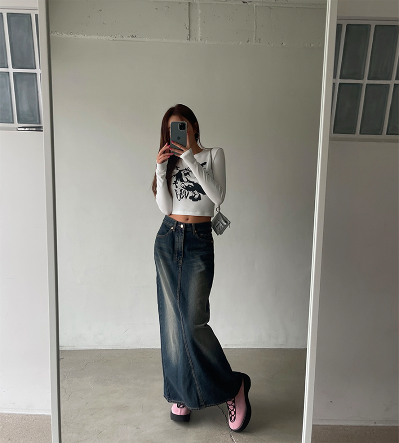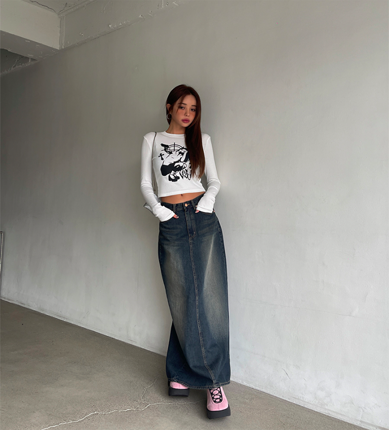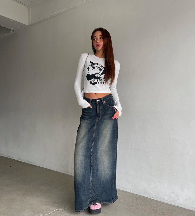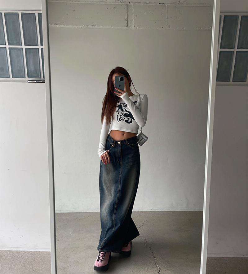 不退流行的牛仔長裙 修飾度佳