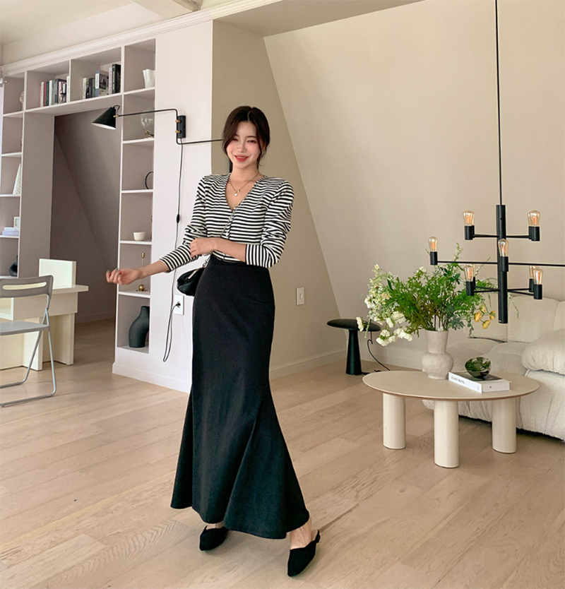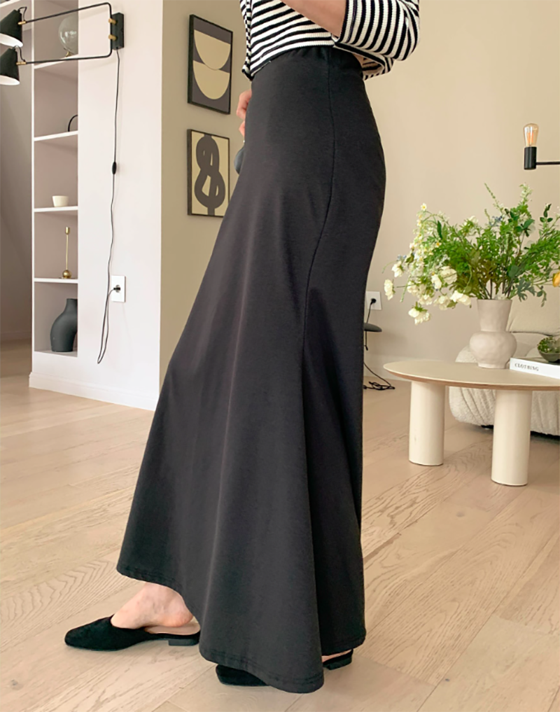喇吧剪裁的下擺增添修身感