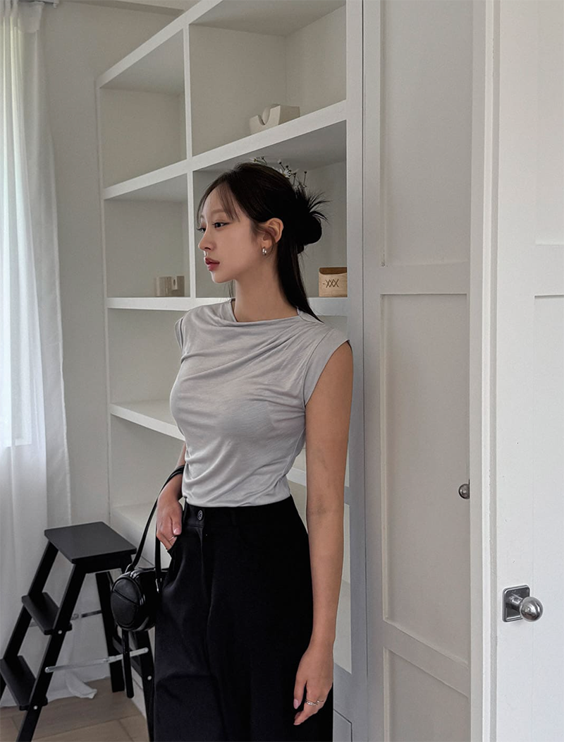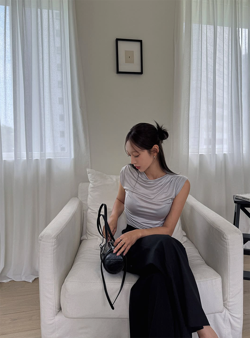 自然微露鎖骨的圓領線條