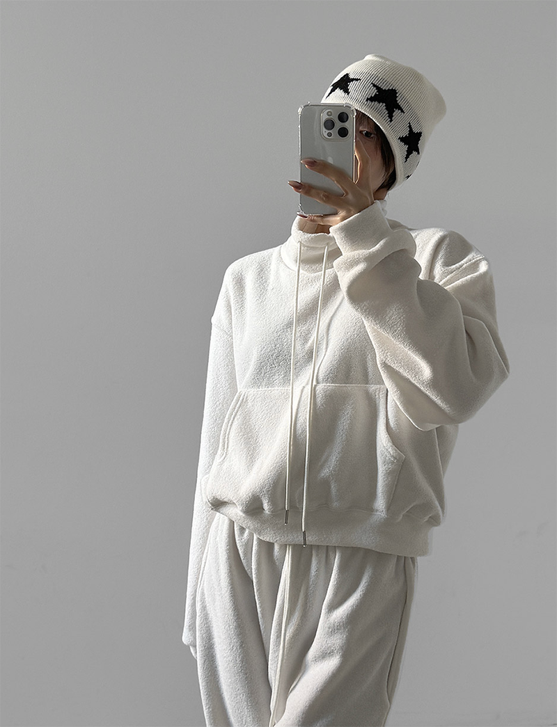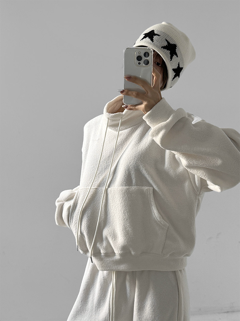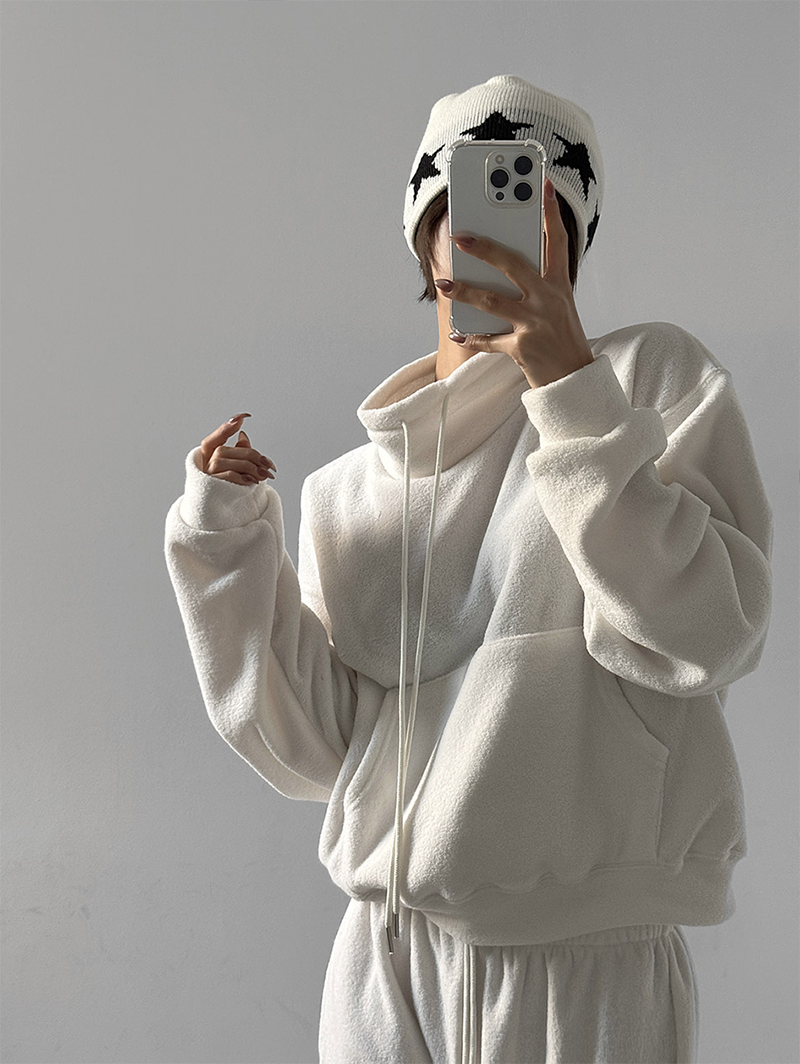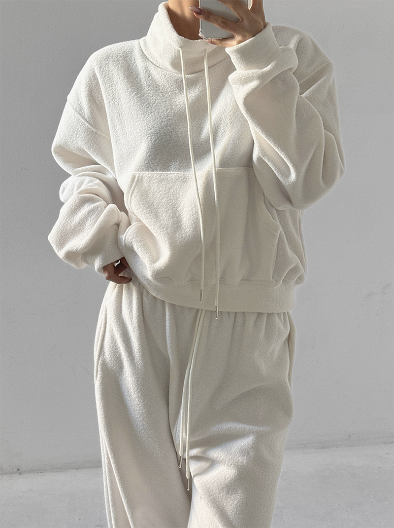 高領口用彈性抽繩點綴