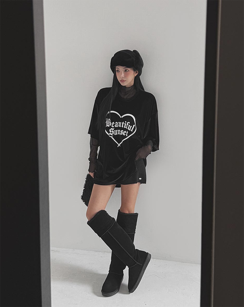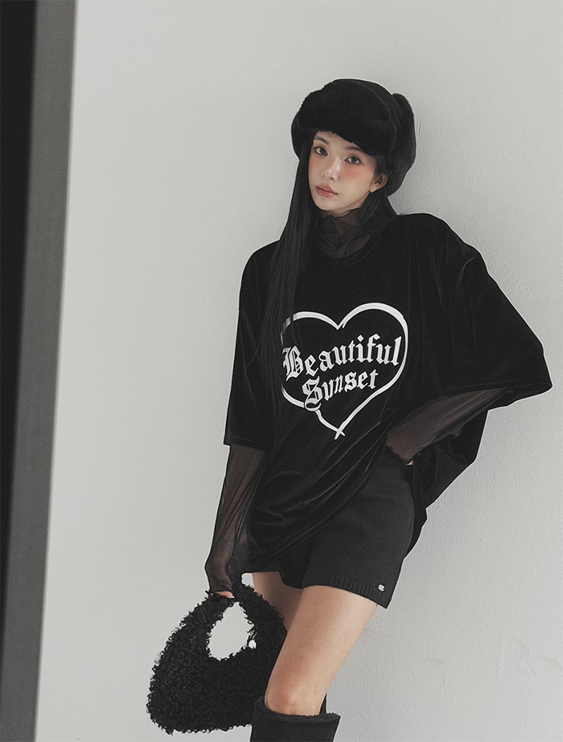 正面用愛心和文字印花強調重點