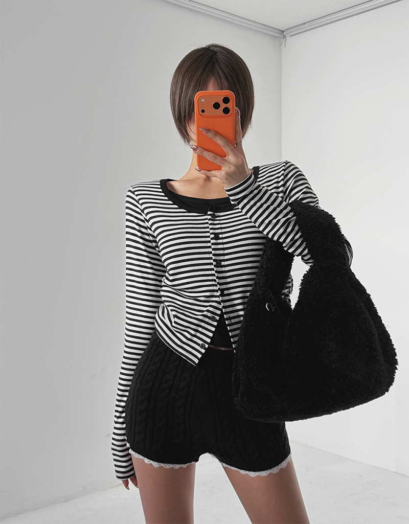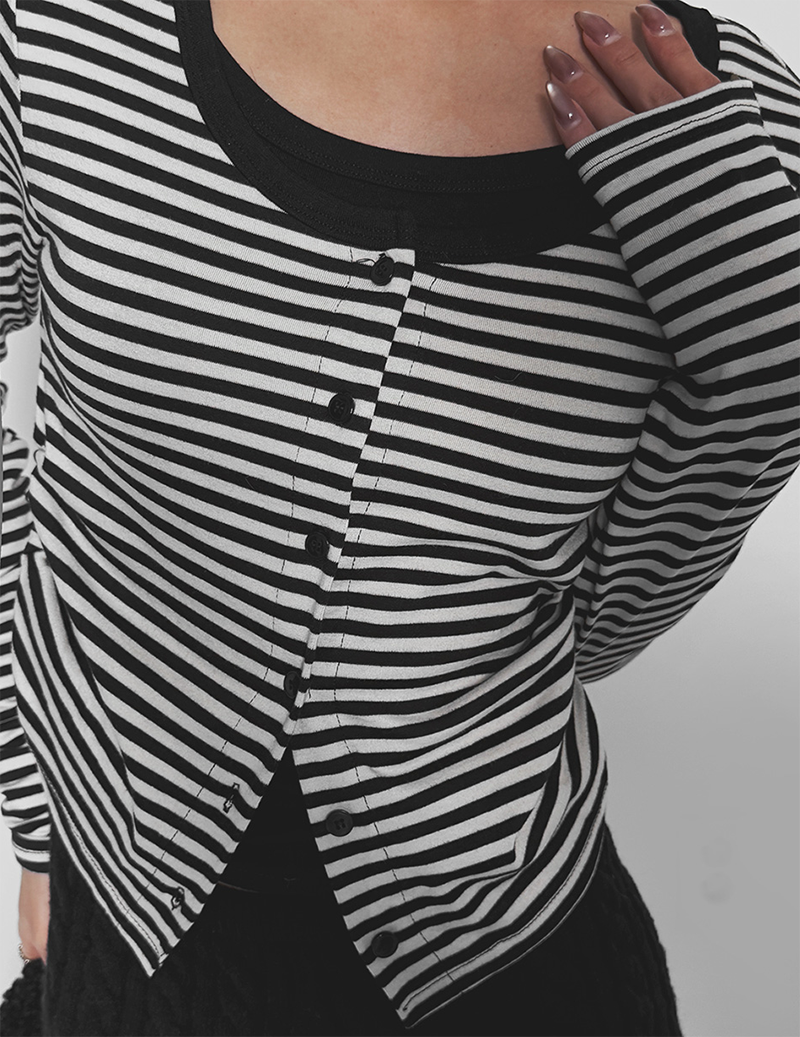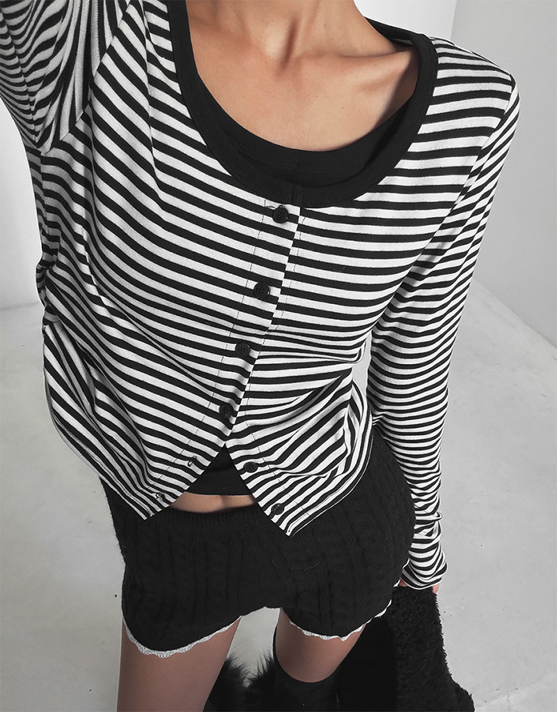 百搭條紋加上排扣