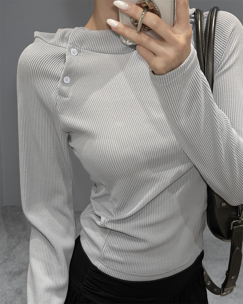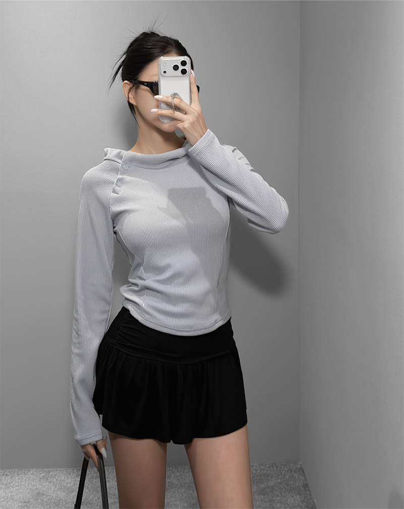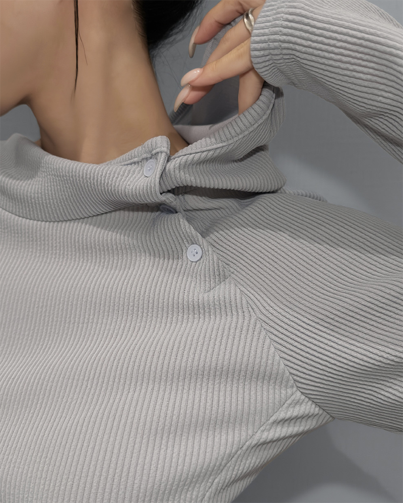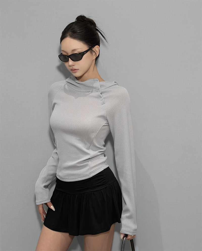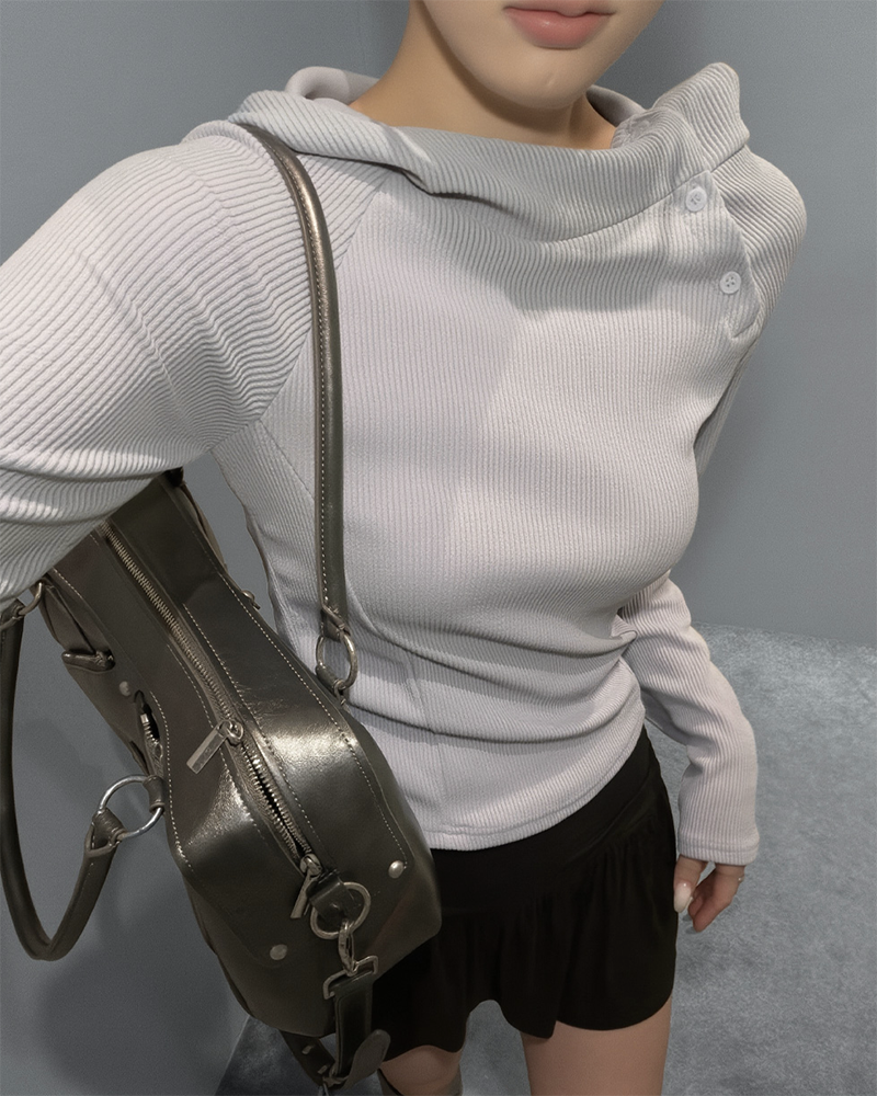 採用高領設計 搭配斜扣細節