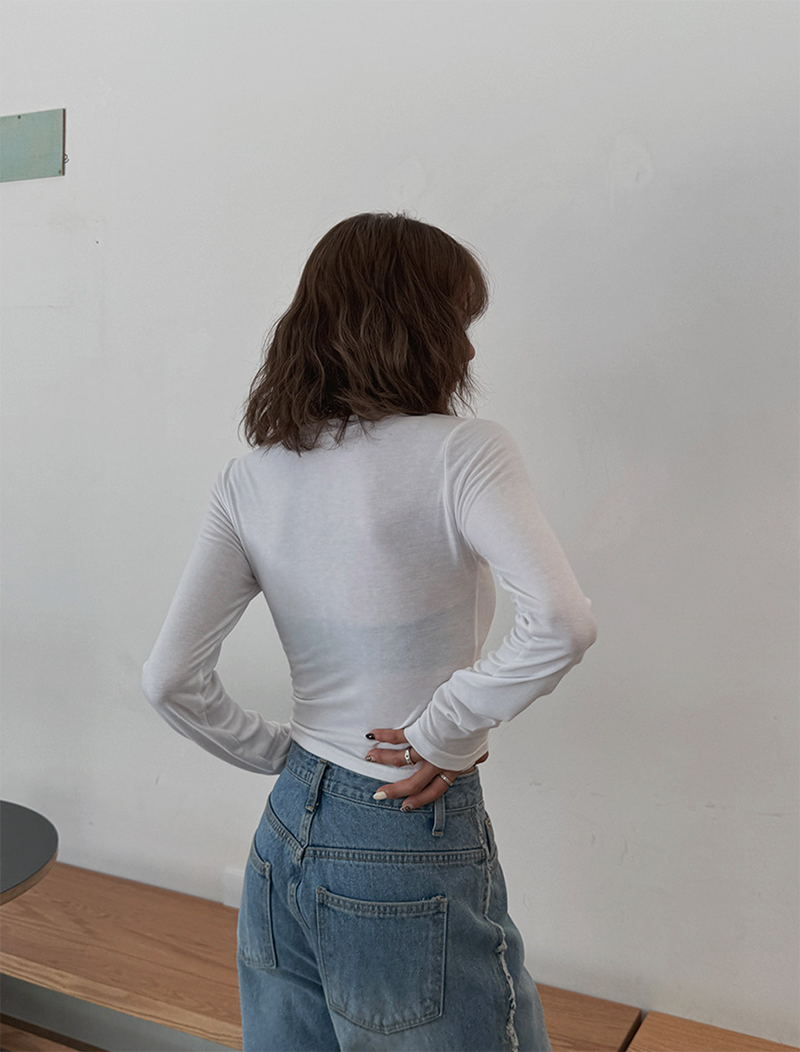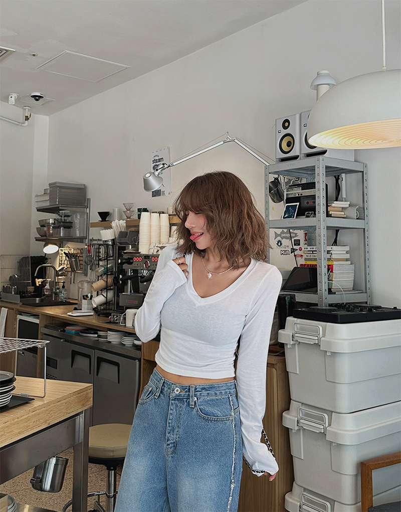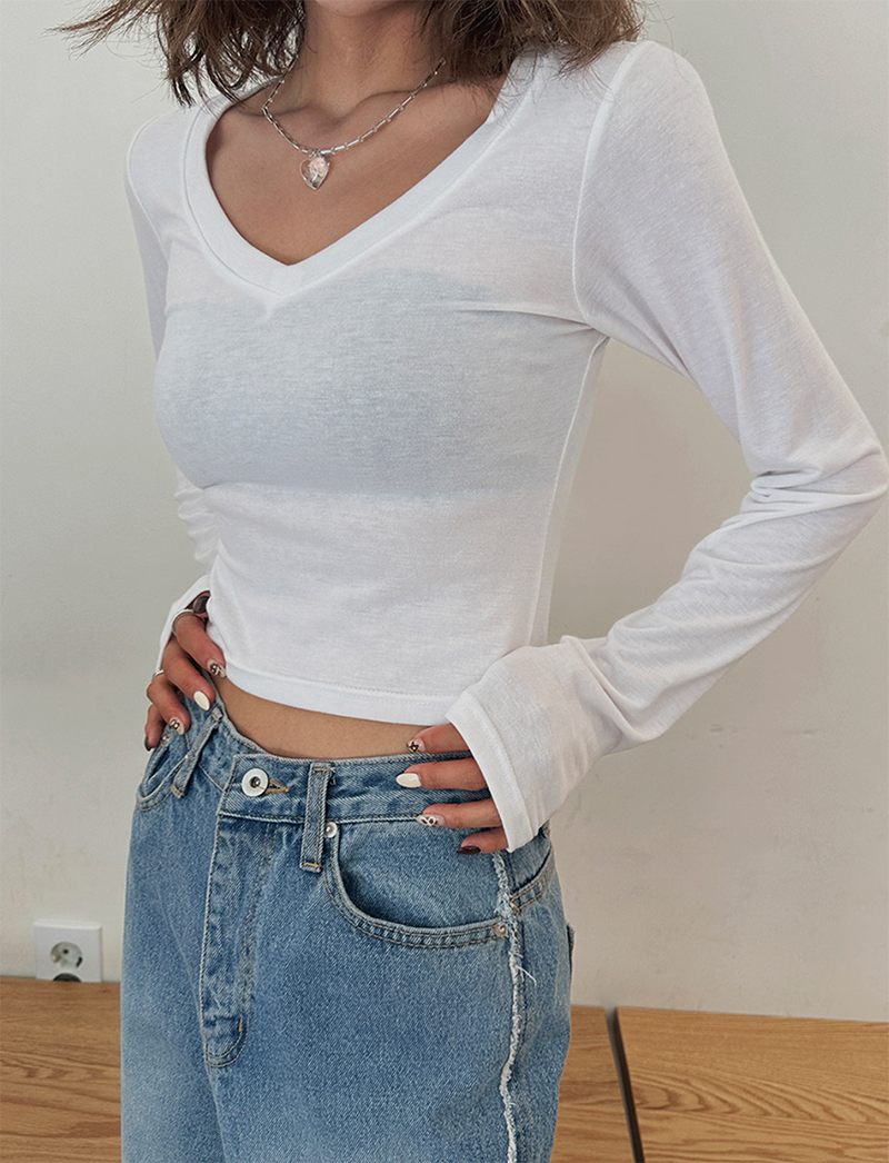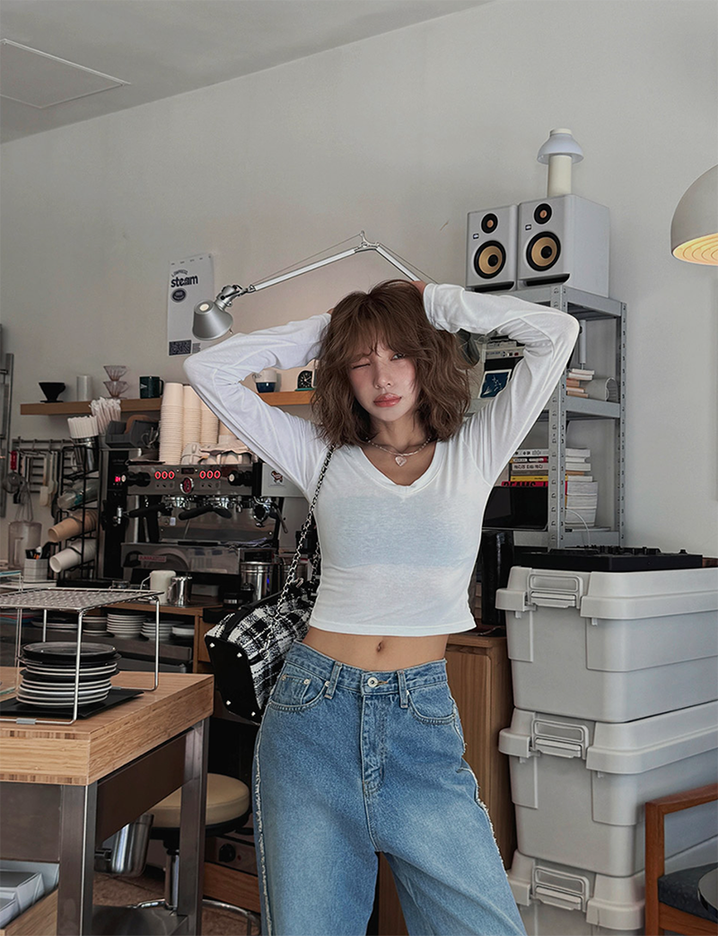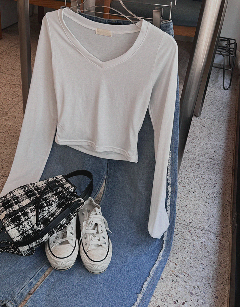 V領長袖T恤設計簡約