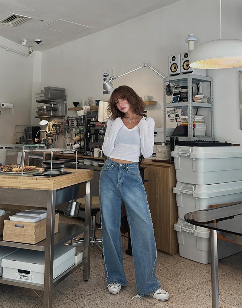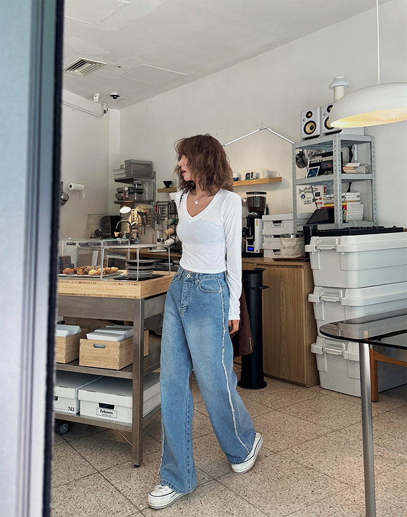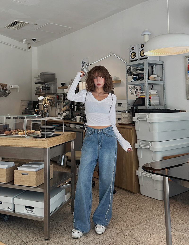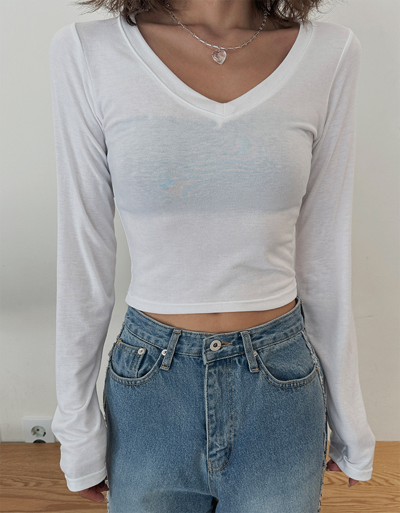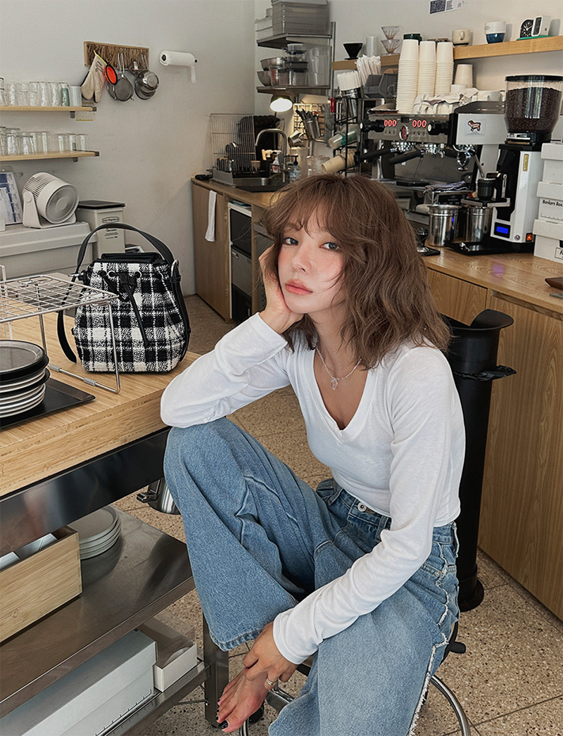 V領長袖T恤設計簡約