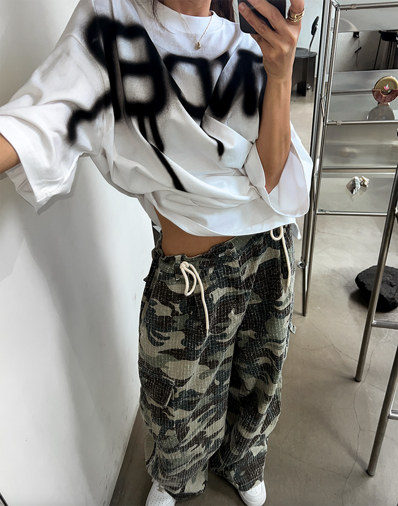 醒目塗鴉字母印花與寬鬆剪裁結合