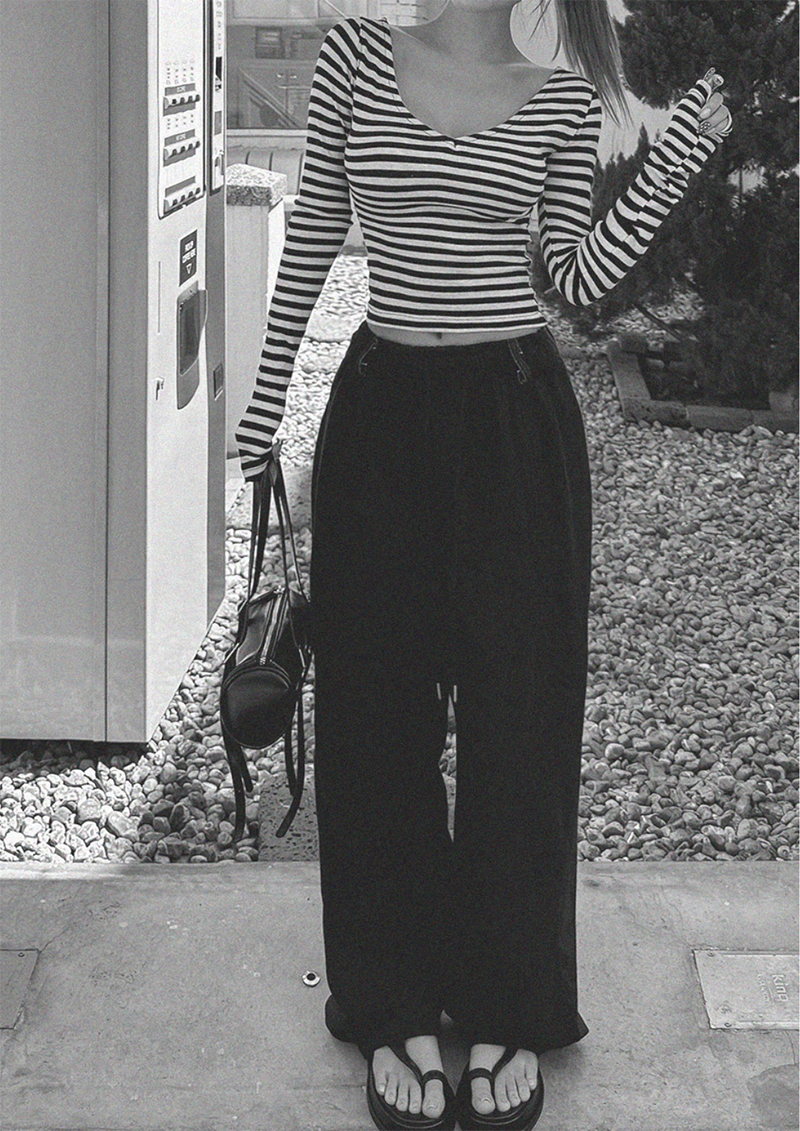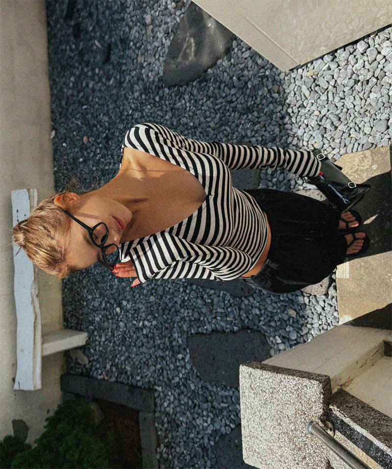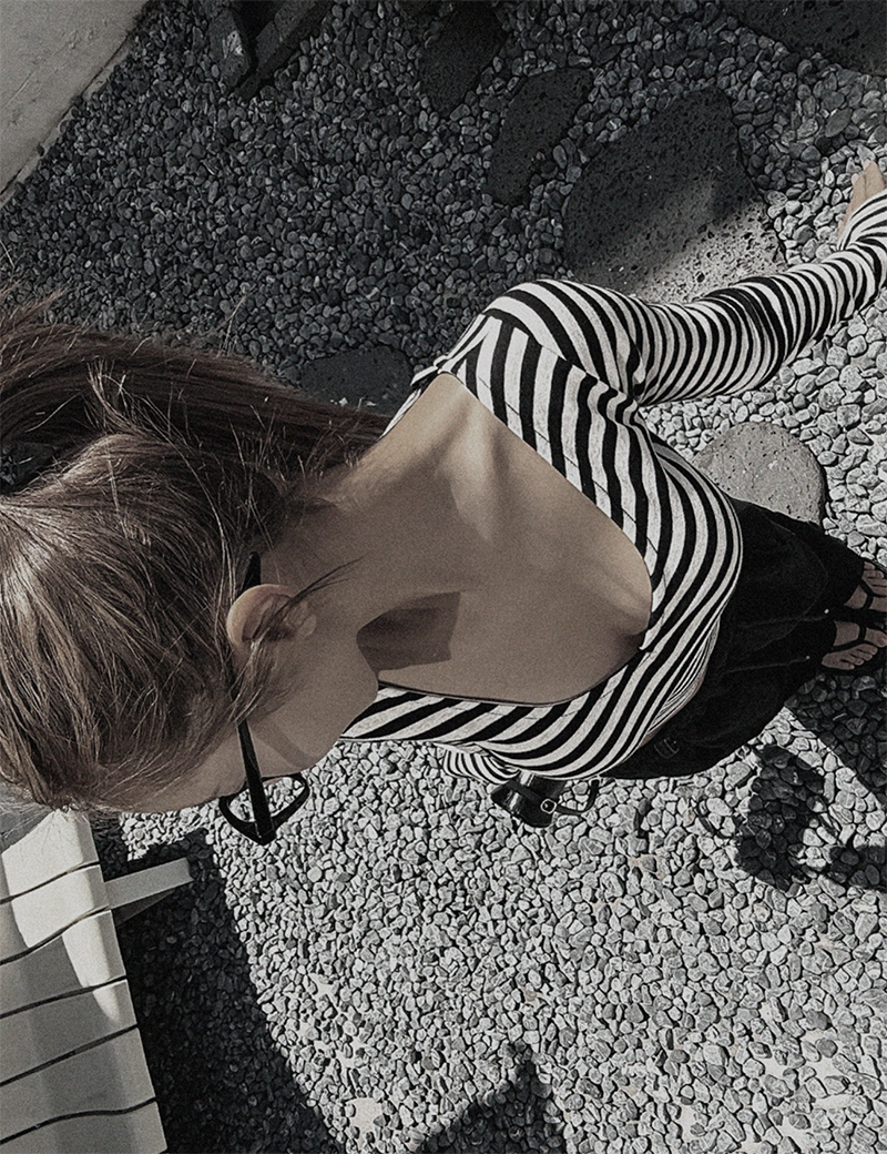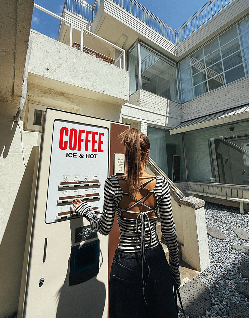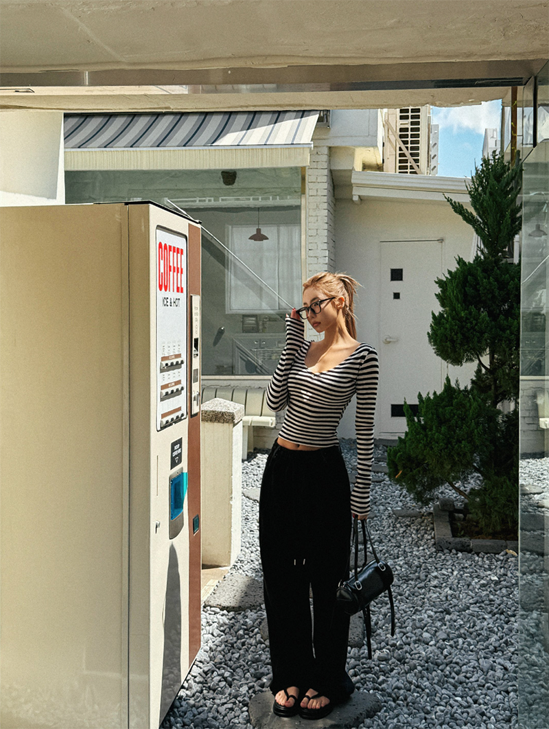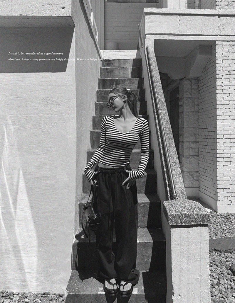 吸睛條紋圖樣結合後背鏤空綁帶設計
