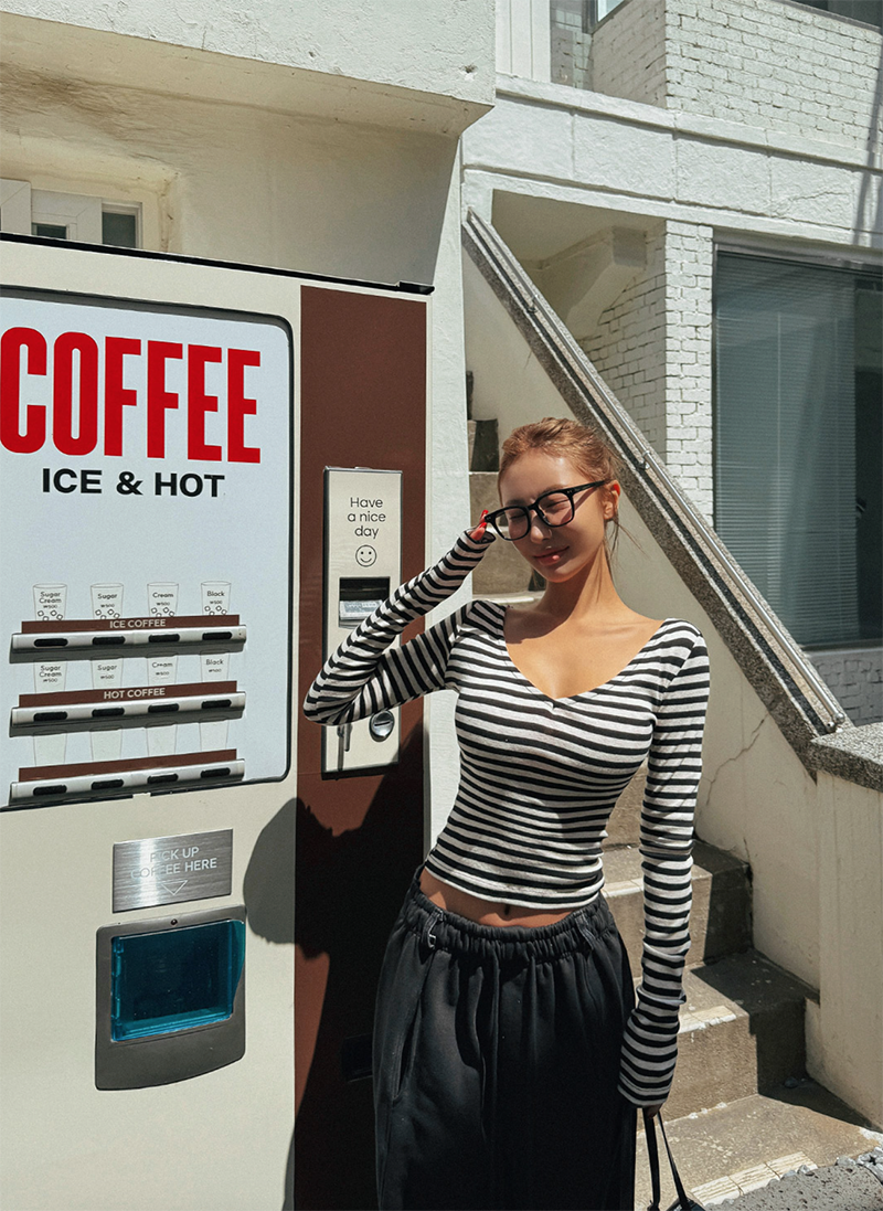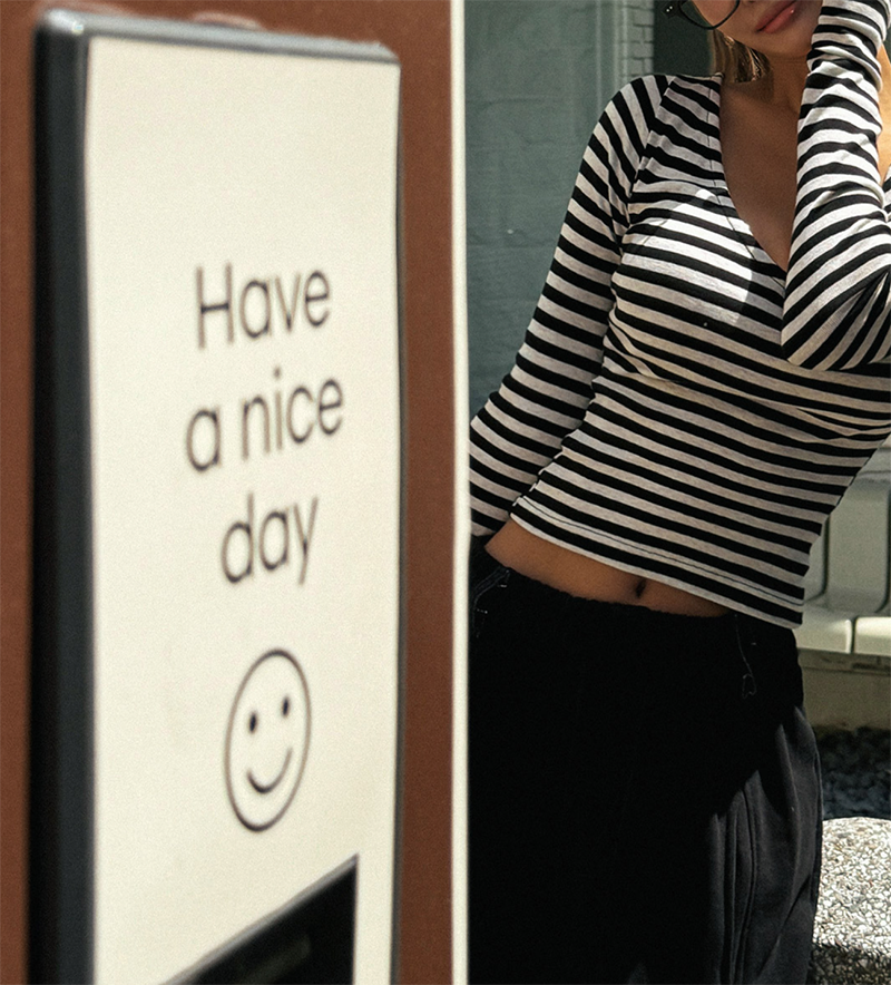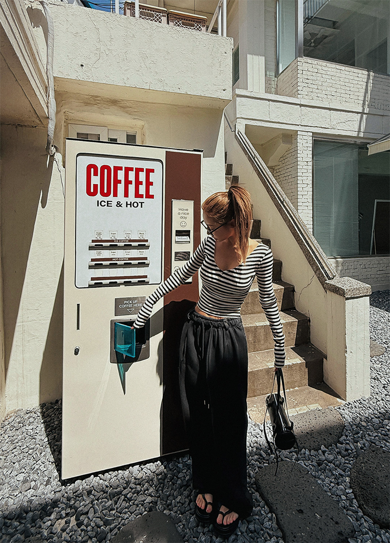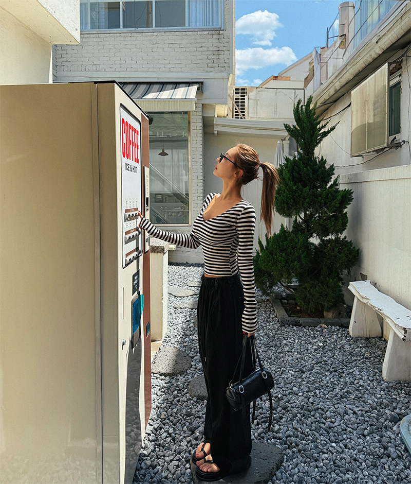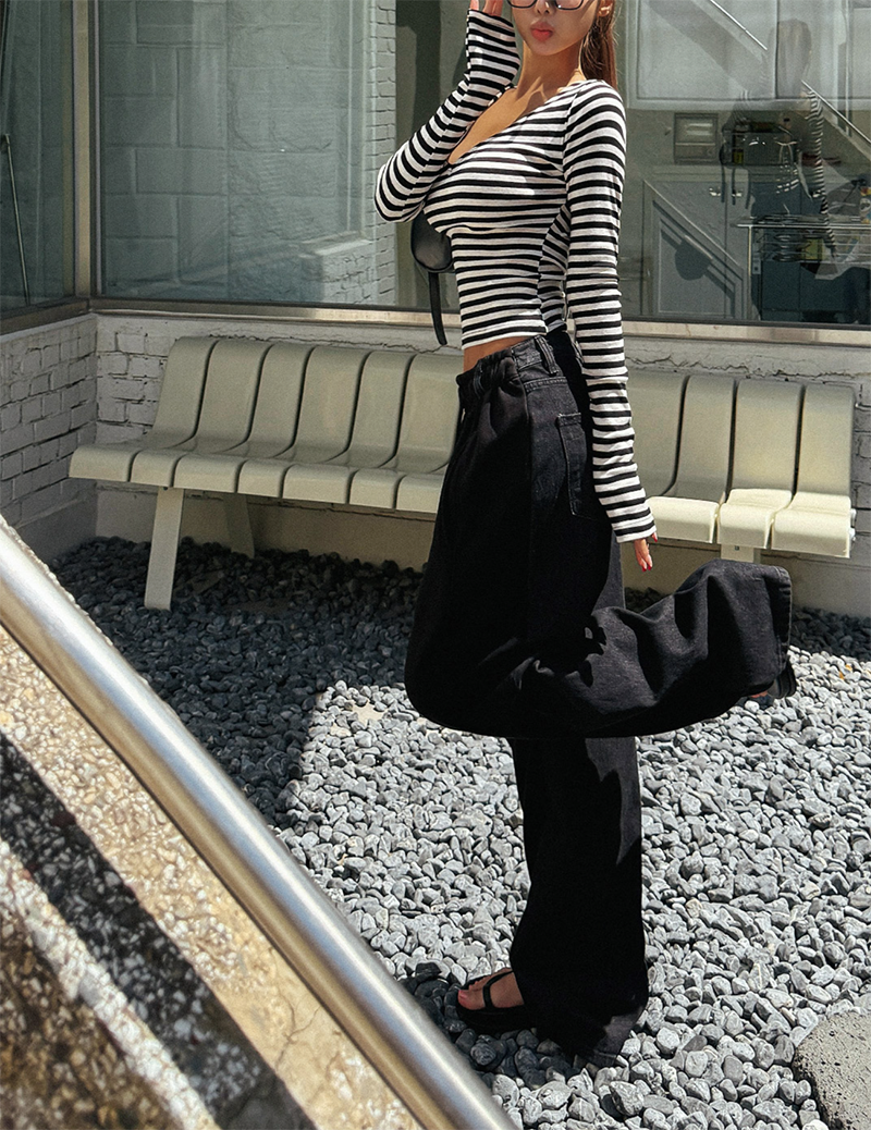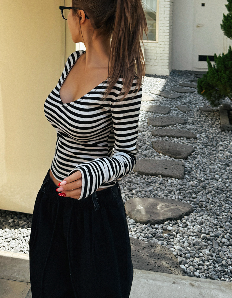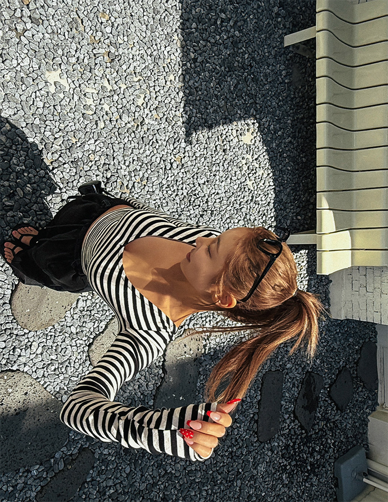吸睛條紋圖樣結合後背鏤空綁帶設計