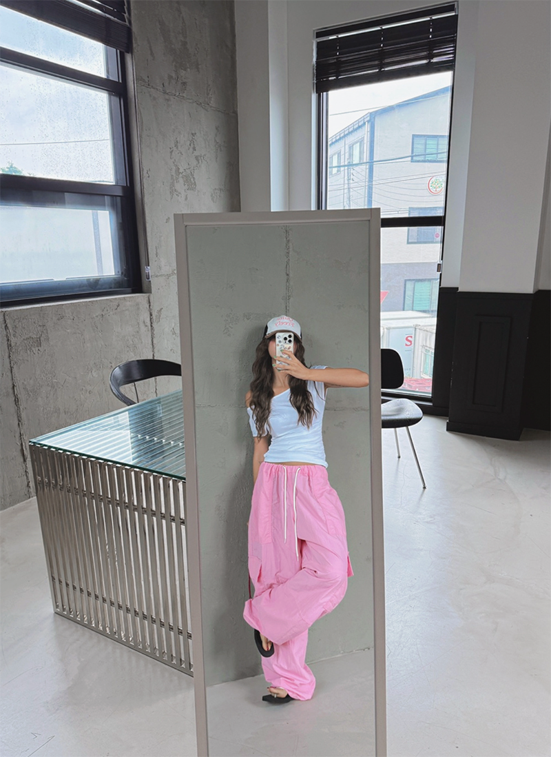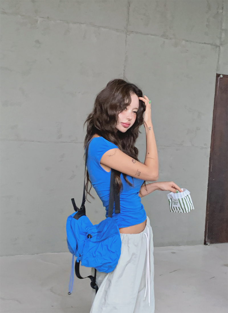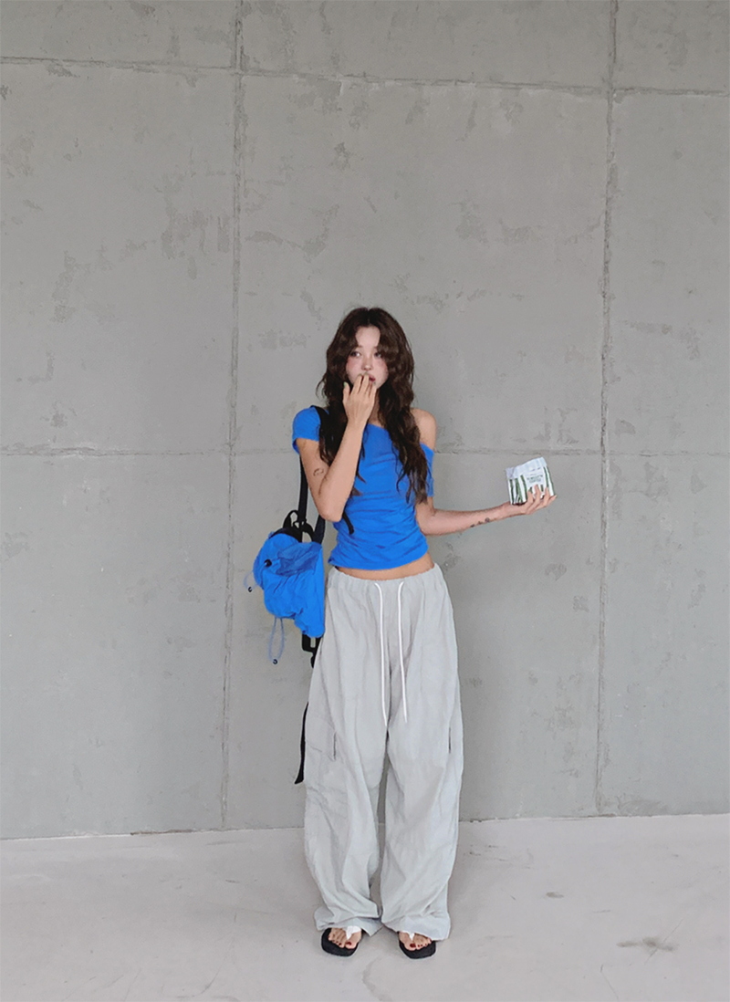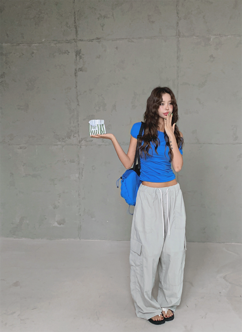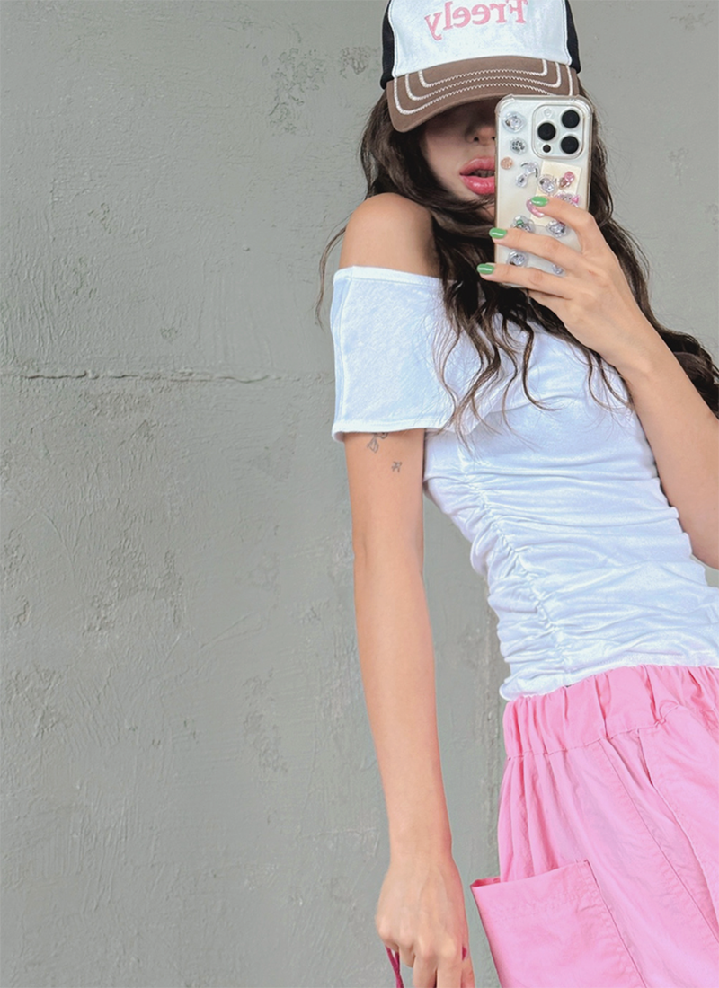 大圓領搭配不對稱抓皺設計