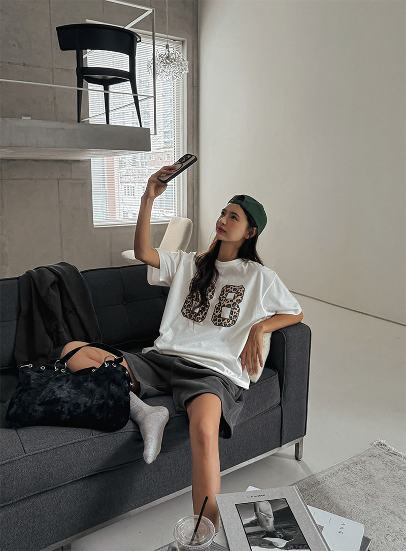 搭配醒目的豹紋數字印花