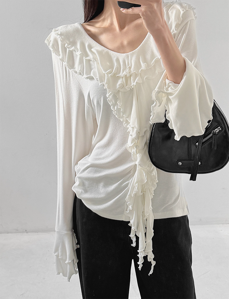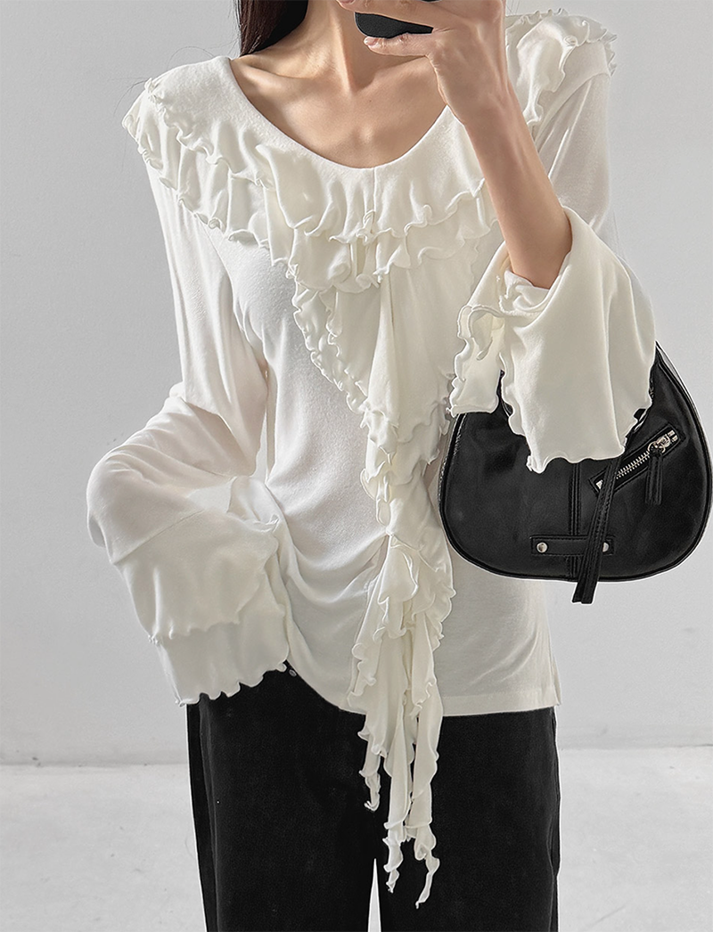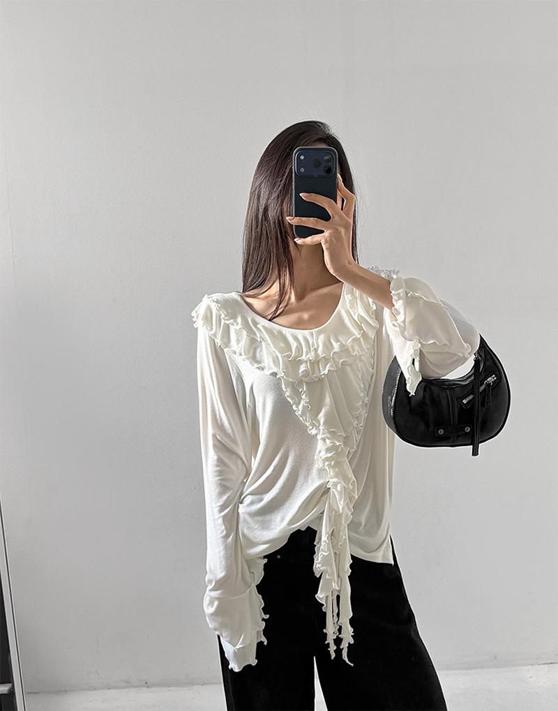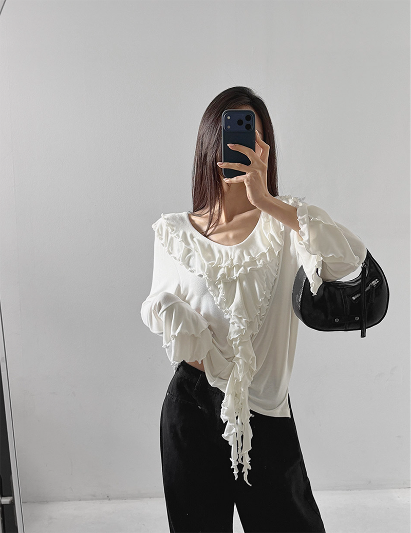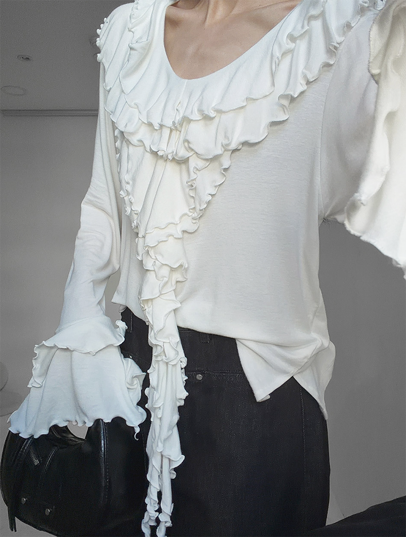 雙層荷葉捲邊設計勾勒出柔美層次感