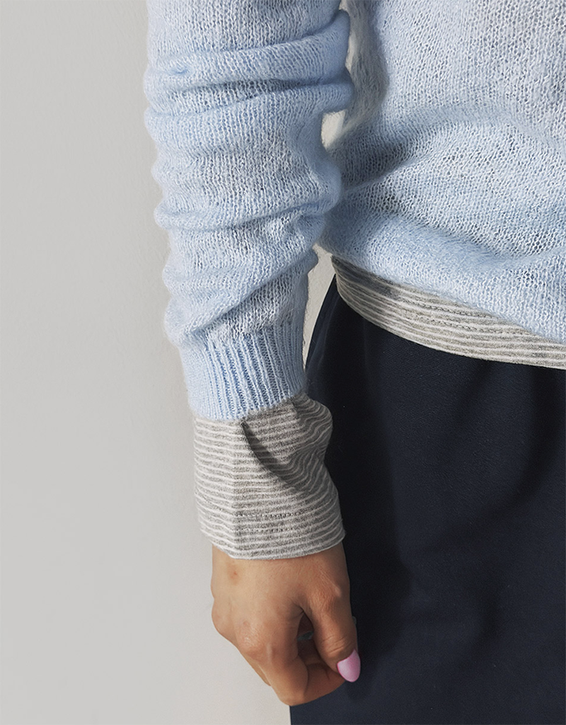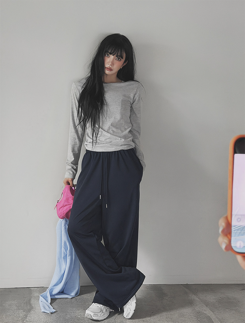 ✔ 圓領剪裁簡約俐落