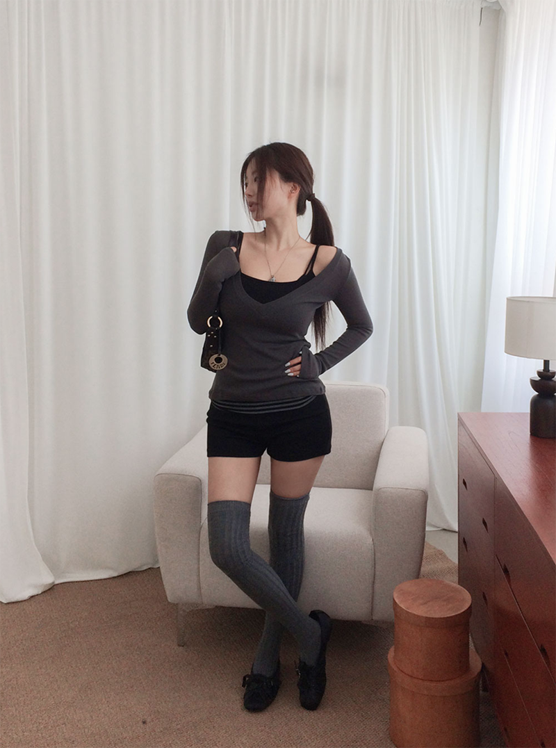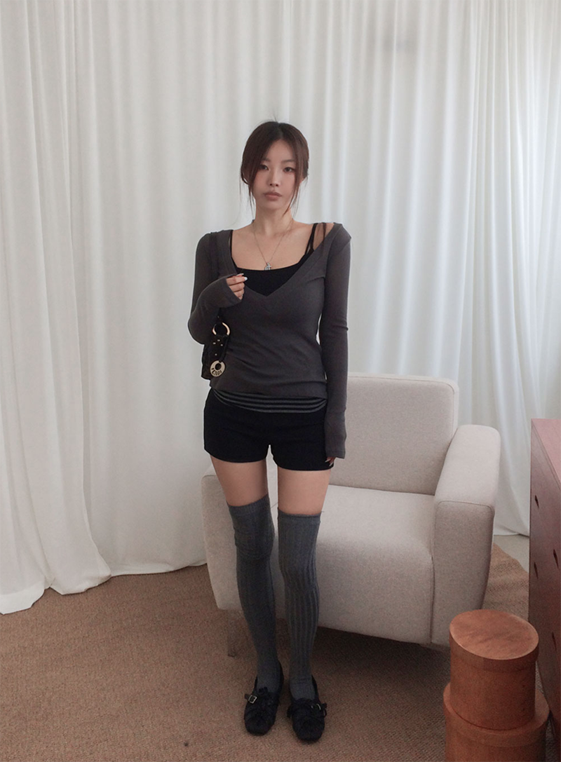 深V領設計方便內搭背心或細肩帶單品