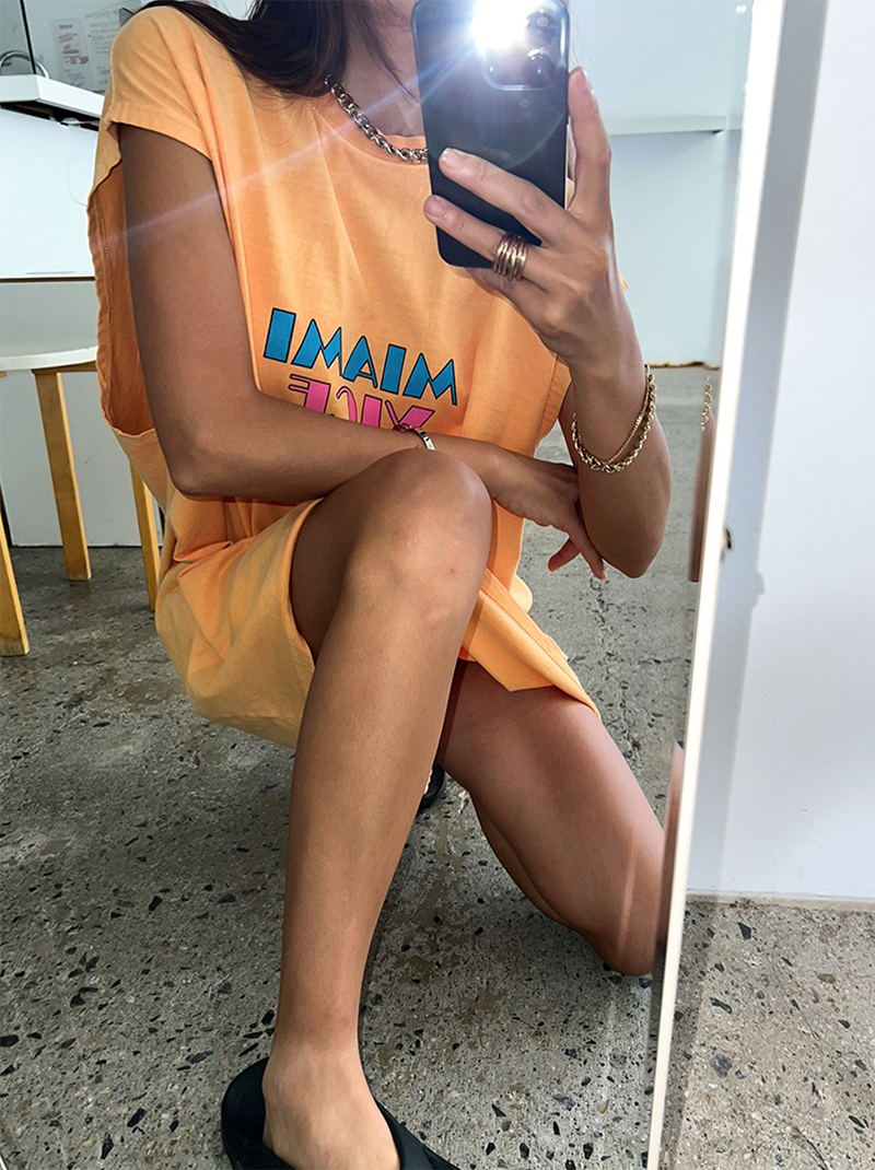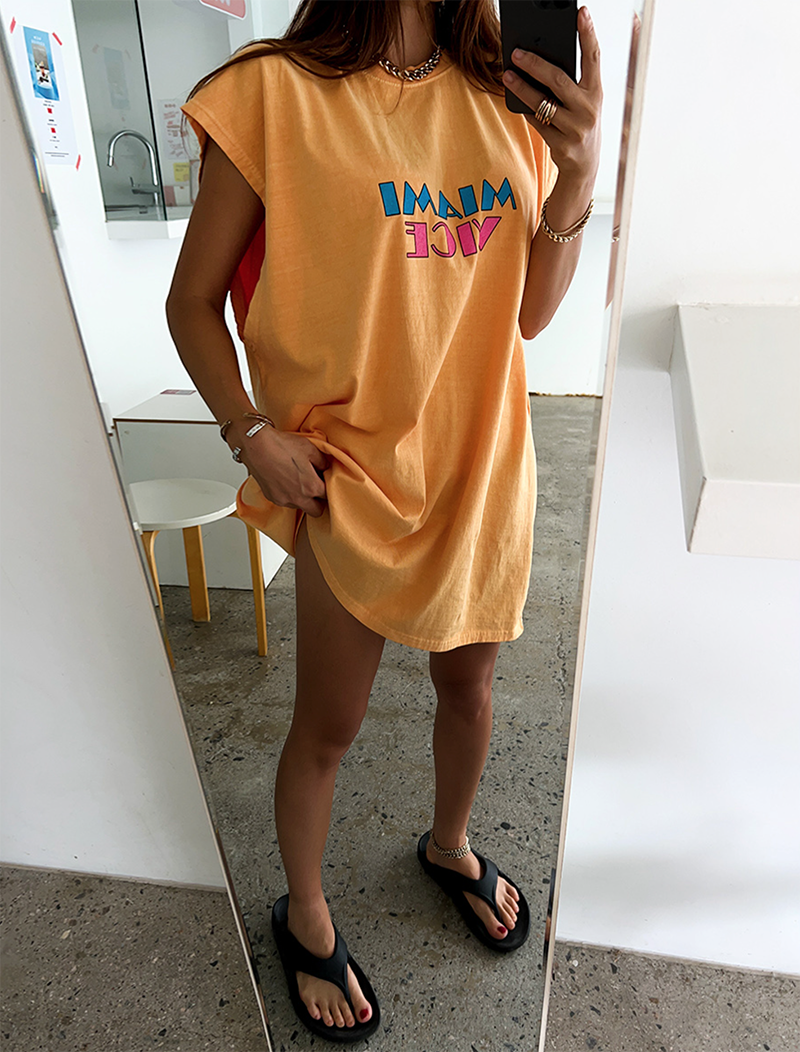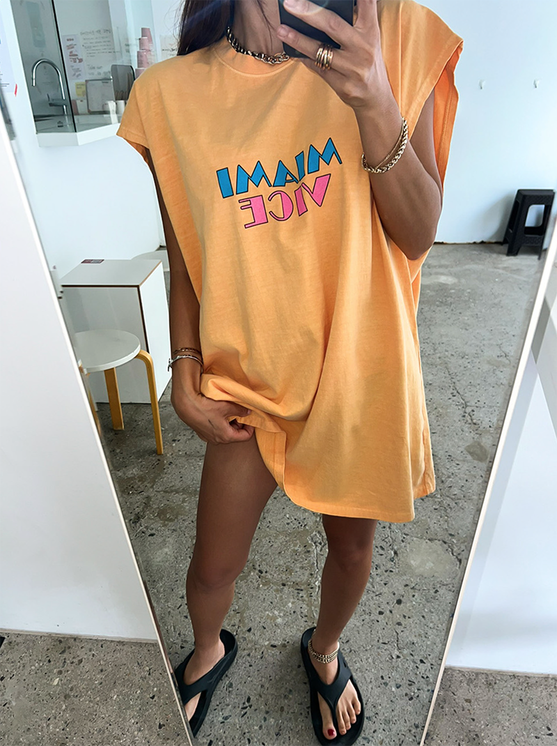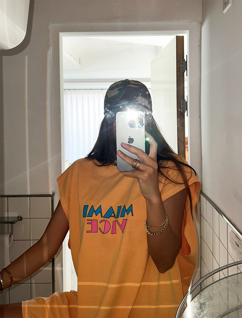 寬鬆自在的輪廓搭配MIAMI VICE字樣