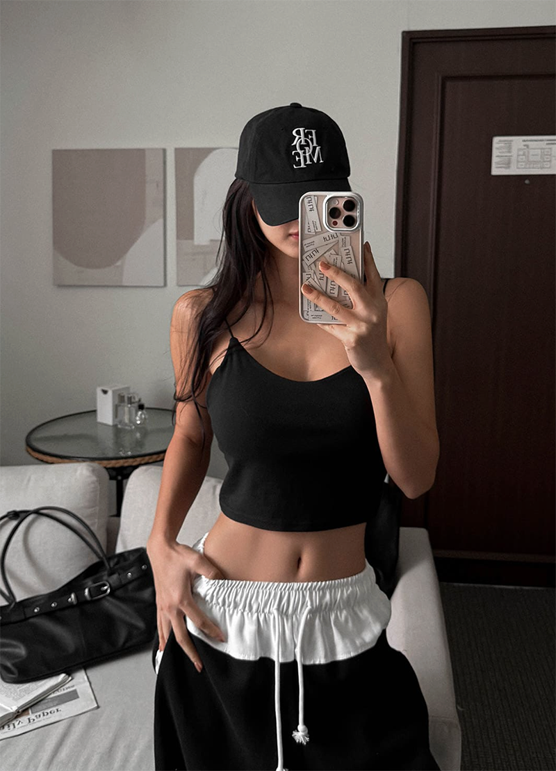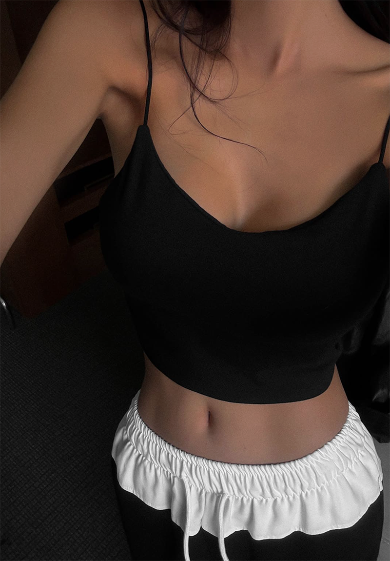 細肩帶設計展現鎖骨與肩線的柔美