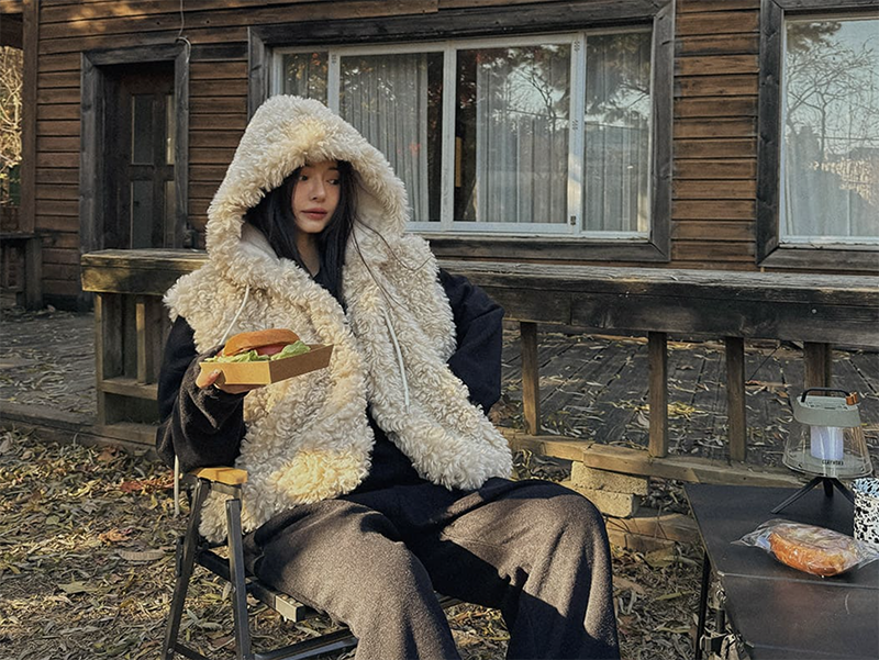 柔軟泰迪毛材質帶來溫暖舒適的穿著感