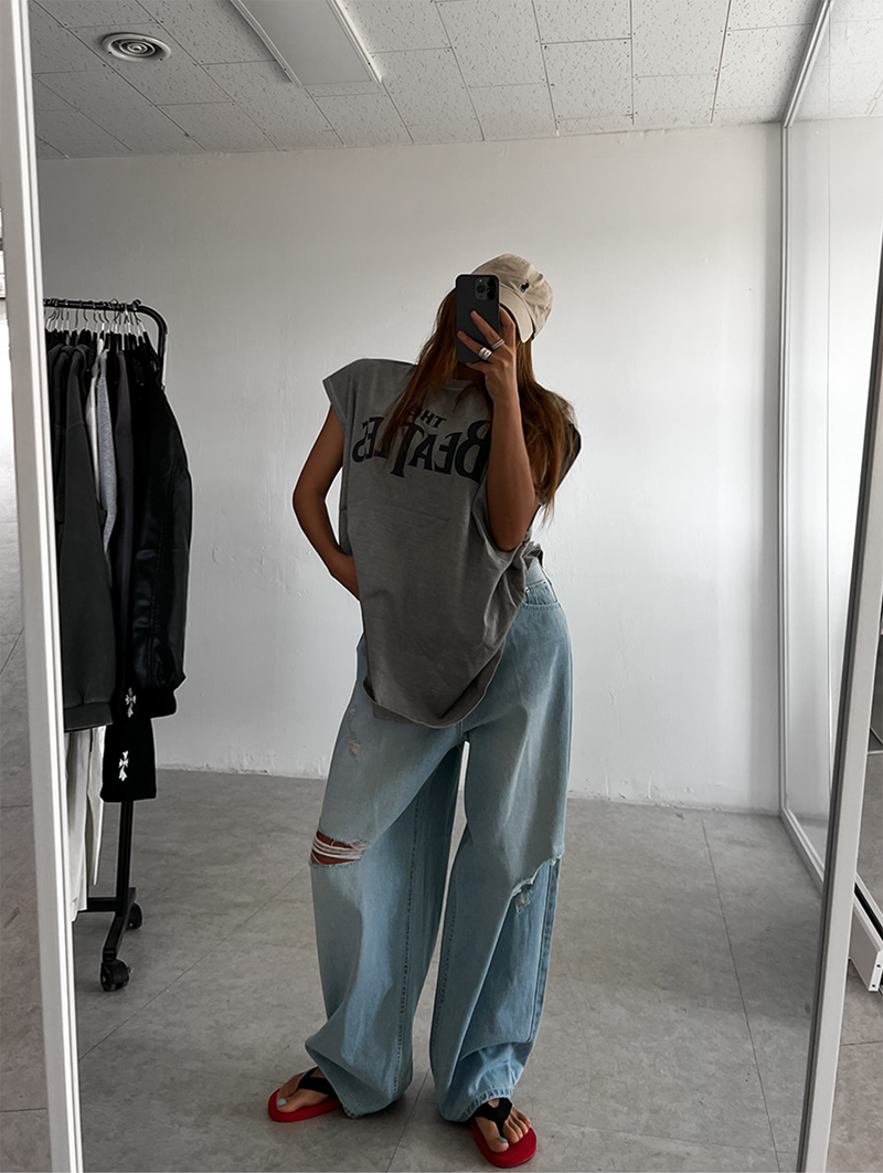BEATLES文字結合復古水洗工藝