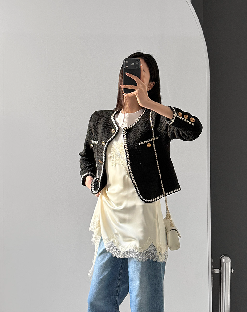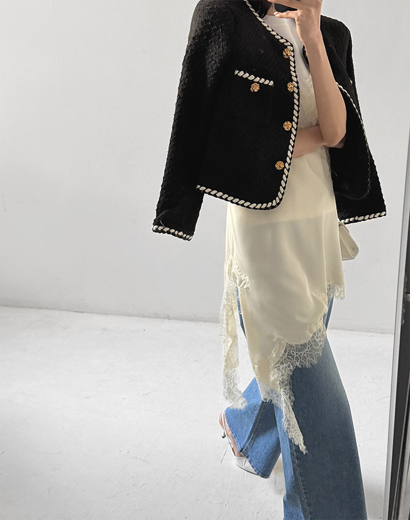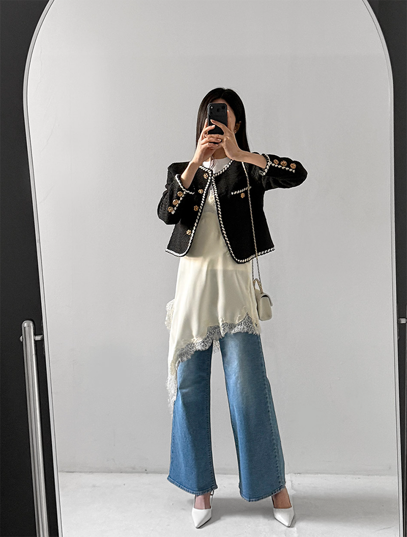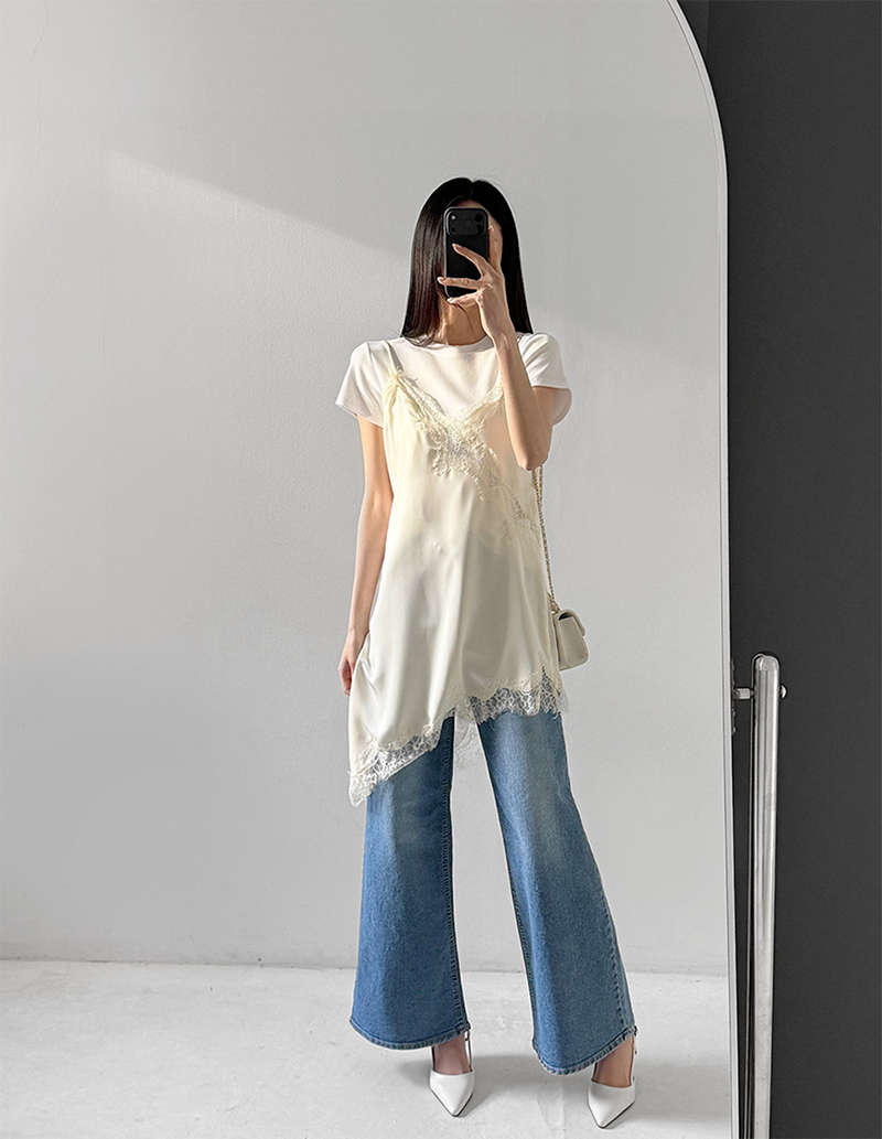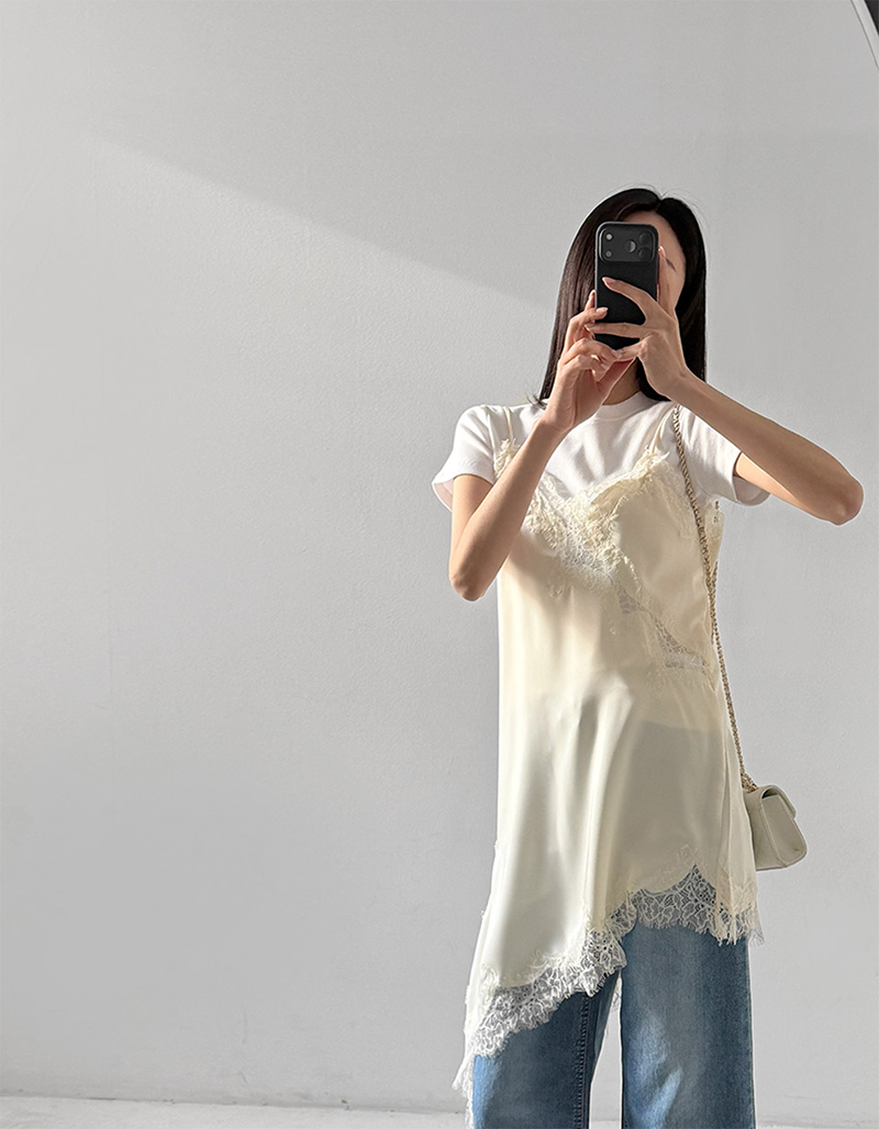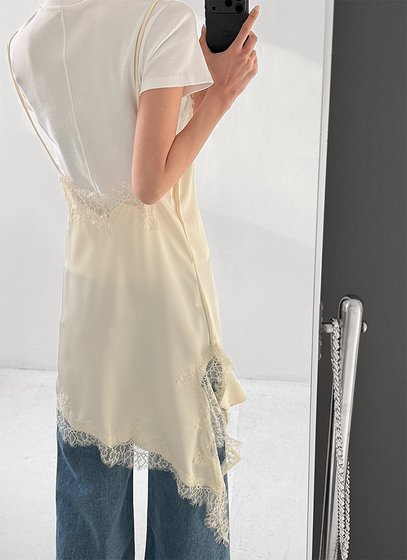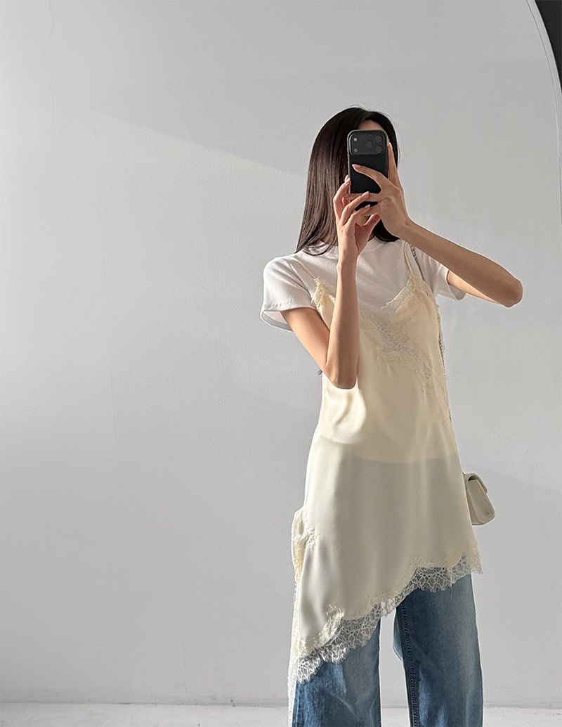 蕾絲拼接與不對稱剪裁營造出細膩層次