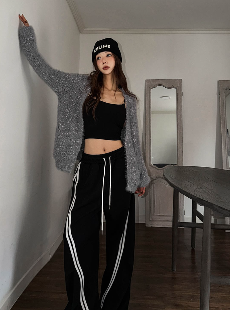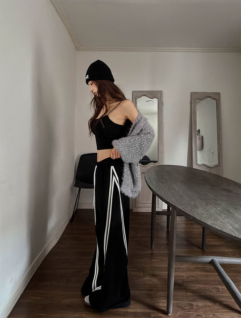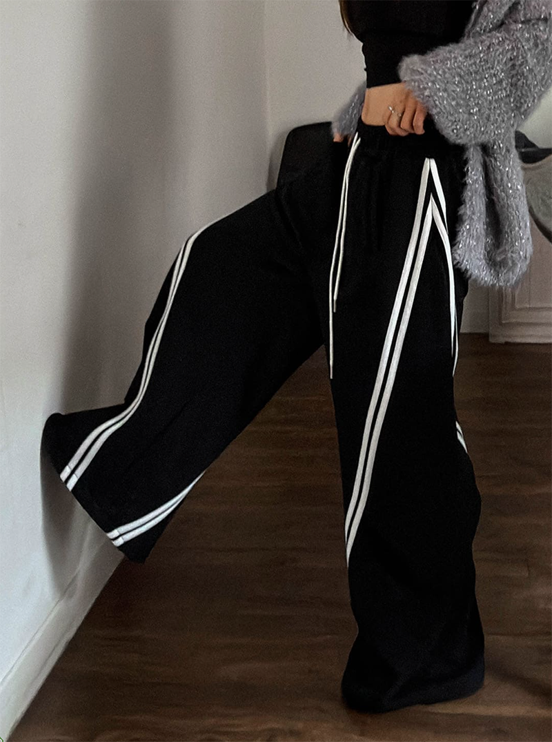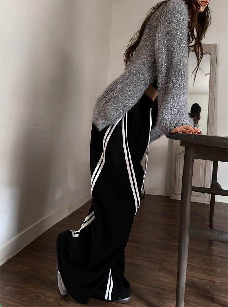 斜線撞色寬鬆休閒寬褲