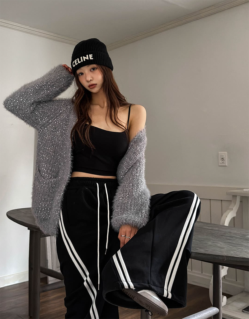 寬鬆氣囊版型搭配斜線撞色設計增添視覺亮點